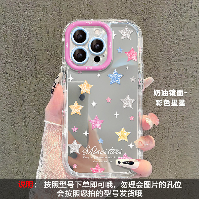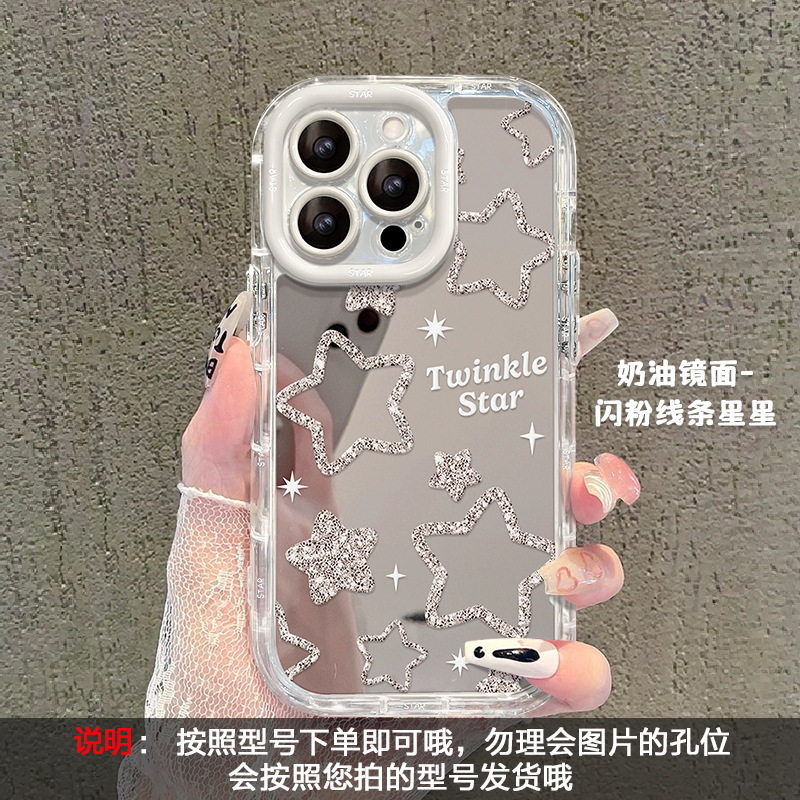 ins风星星适用苹果16手机壳iphone15promax镜面14高级感13透明7/8