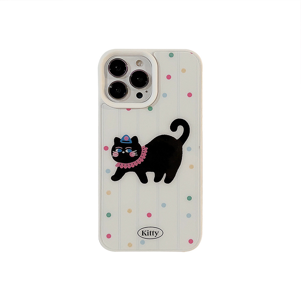 彩色点点小猫适用苹果14ProMax手机壳16可爱iPhone13玻璃壳15硬壳