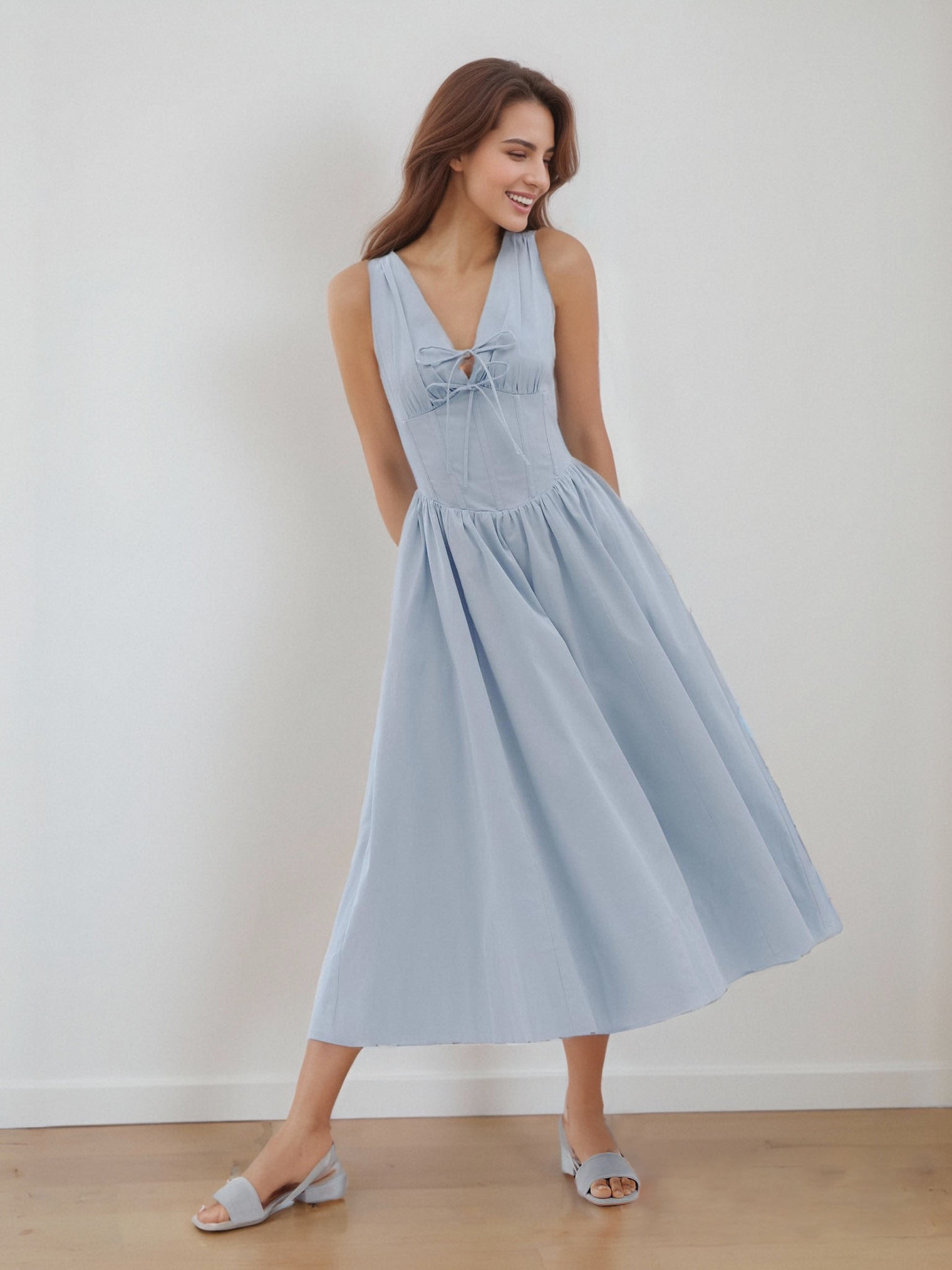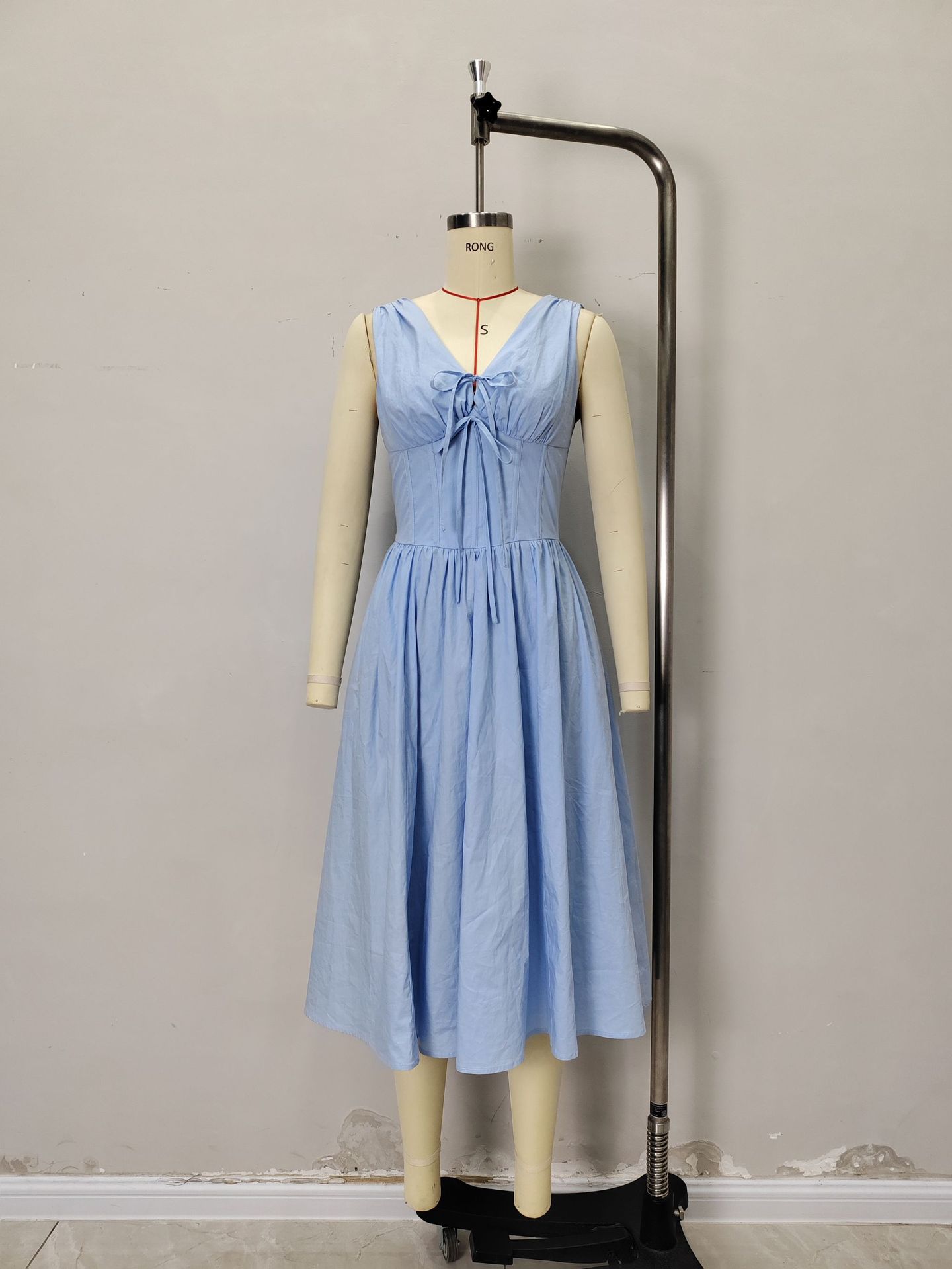 独立站亚马逊夏季新款修身吊带长裙欧美风休闲V领系带气质连衣裙