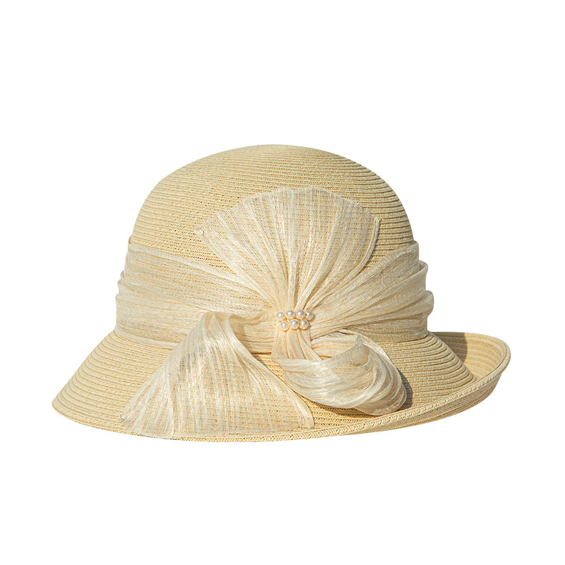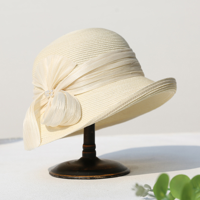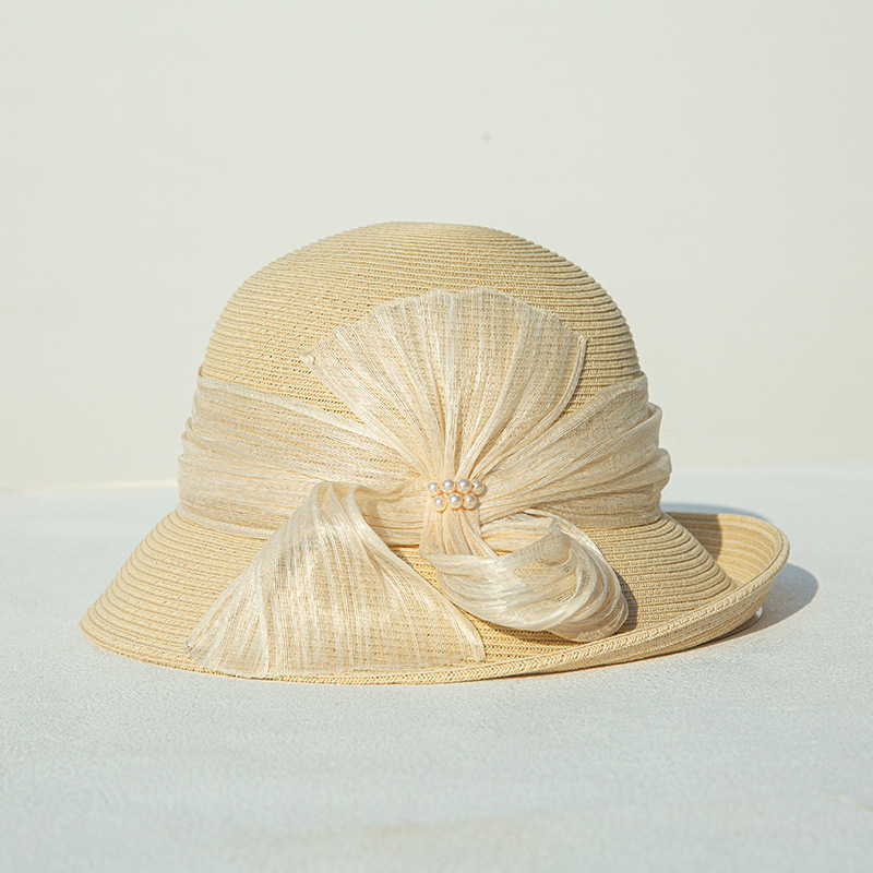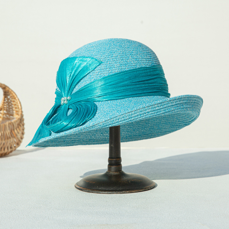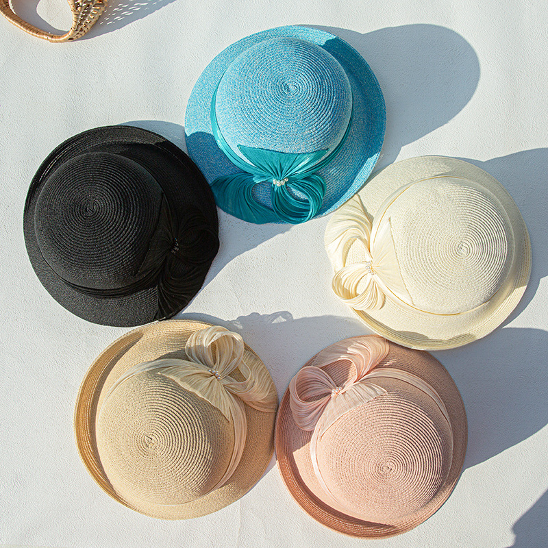 高端真丝麻草帽女可折叠遮阳帽卷边沙滩帽夏天韩版百搭太阳帽批发