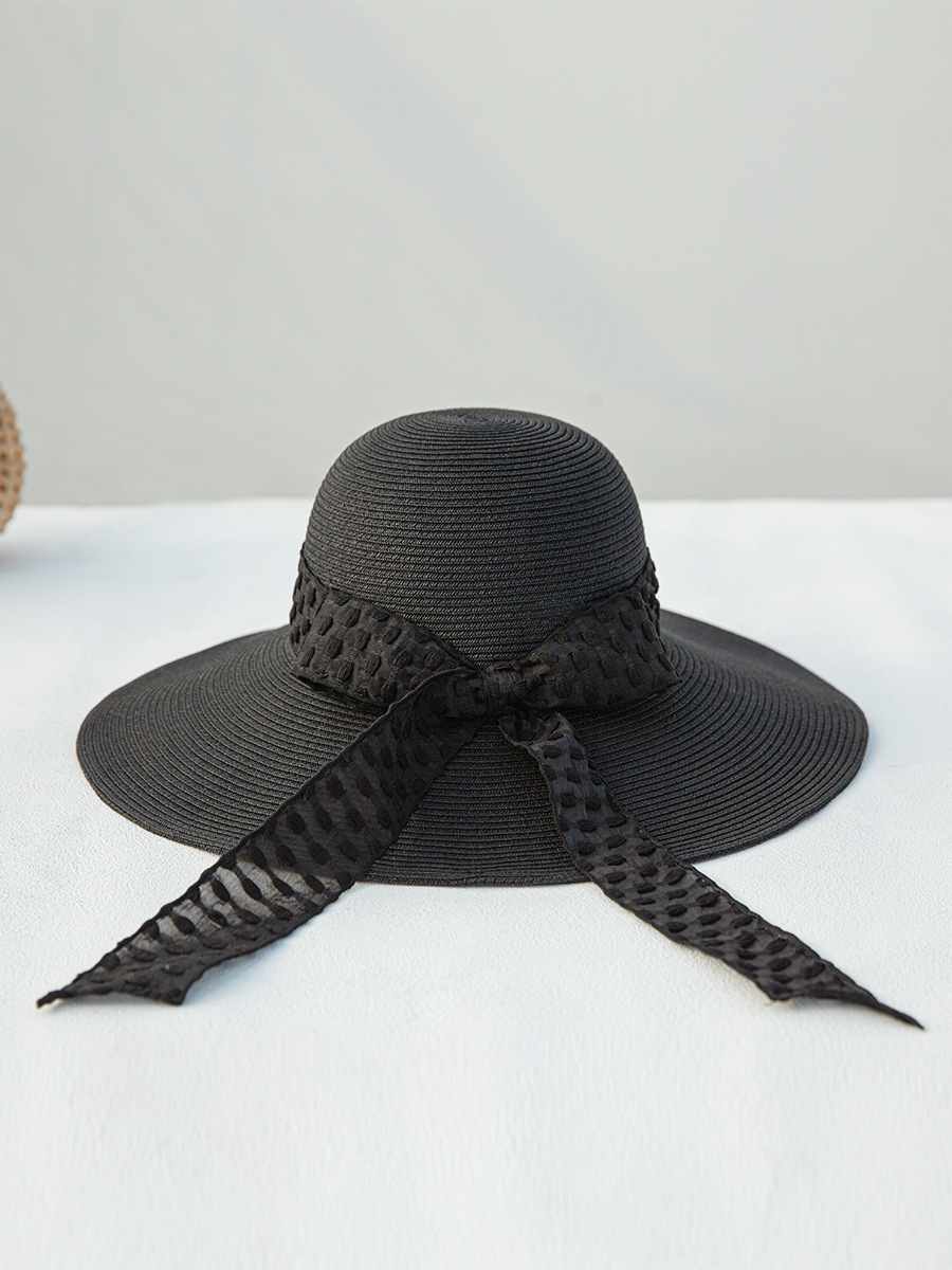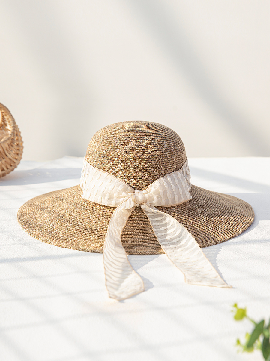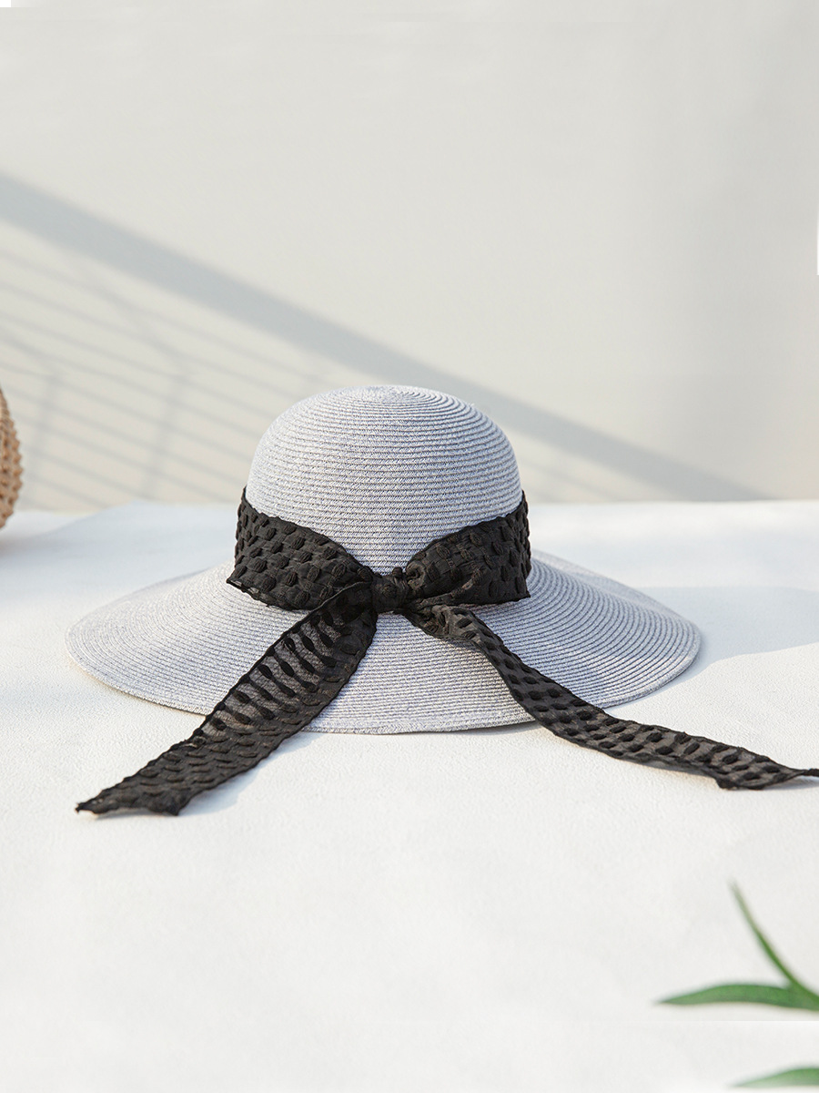 新款草帽遮阳女海边沙滩蝴蝶结飘带可折叠夏季出游太阳帽