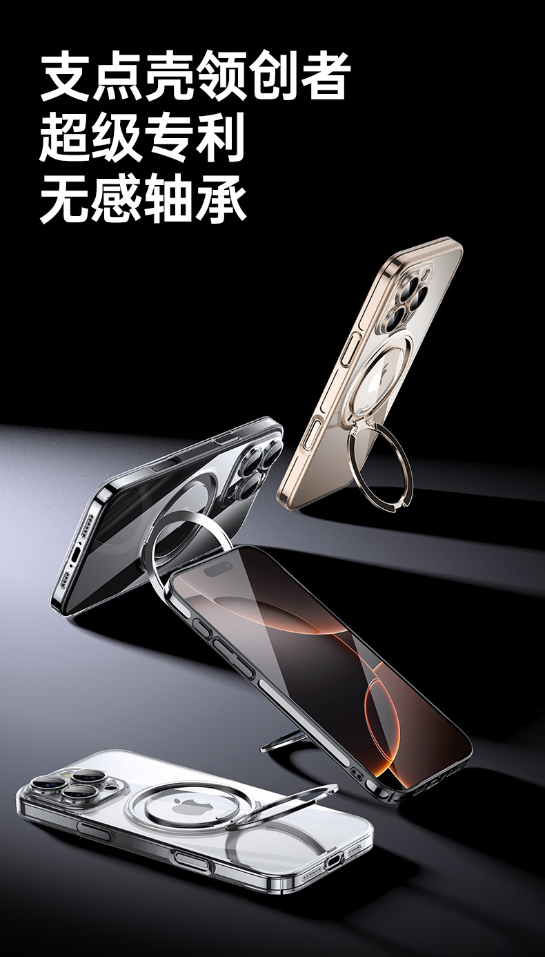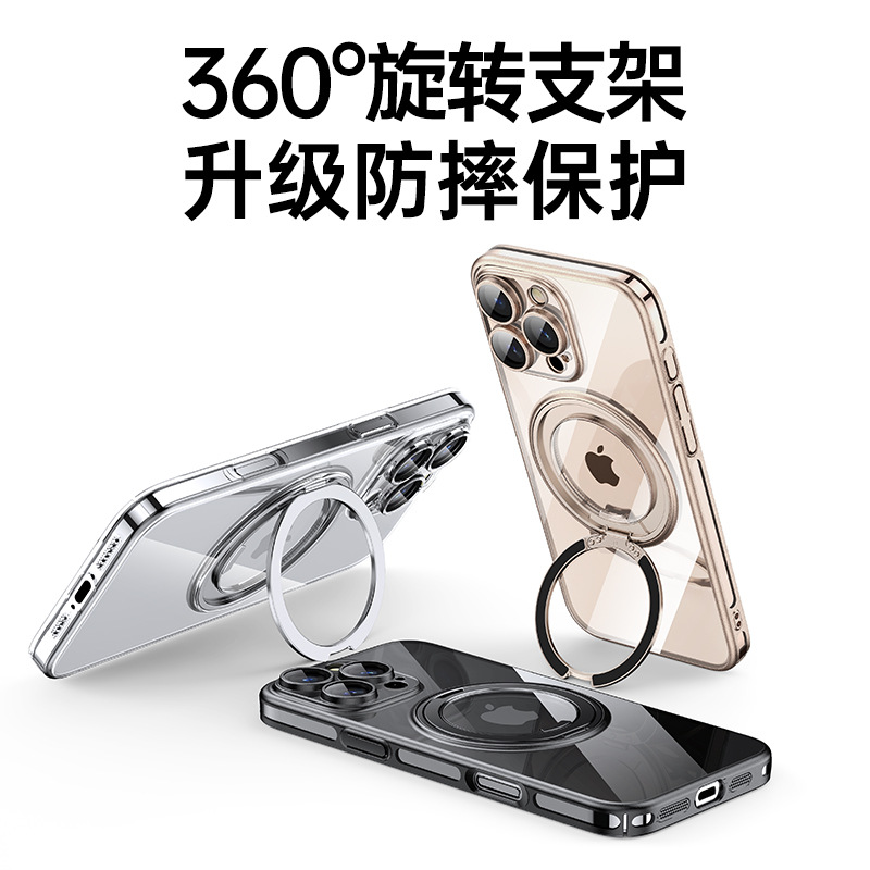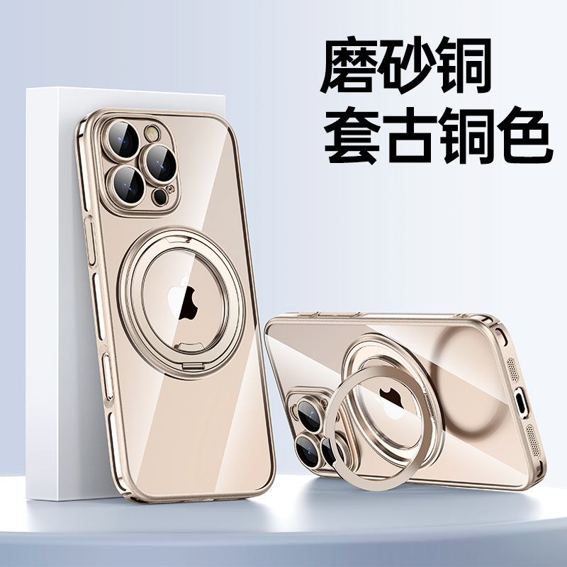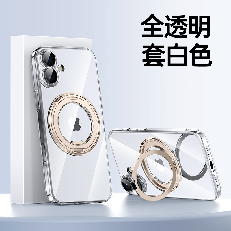 适用苹果16ProMax手机壳电镀iPhone16磁吸360齿轮支架14Pro防摔壳