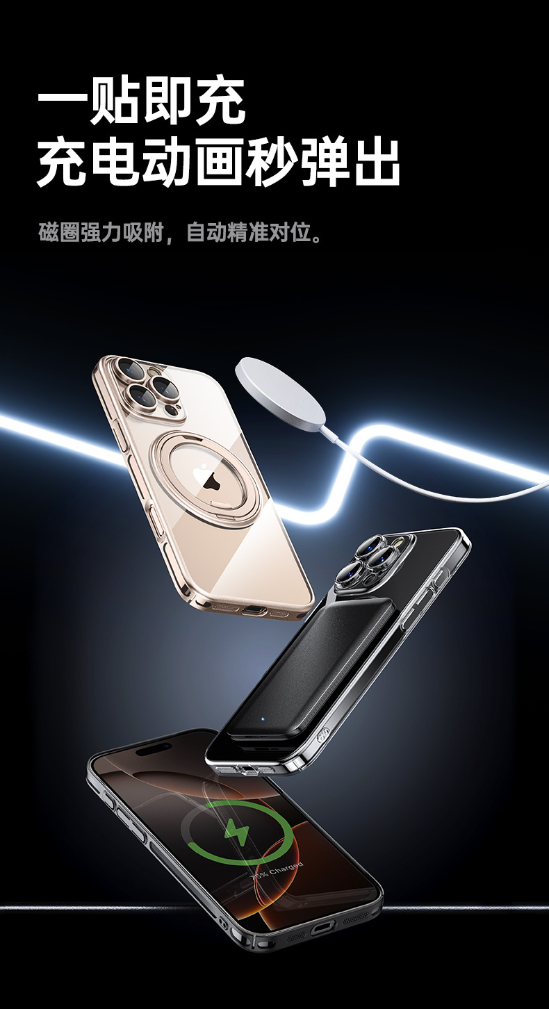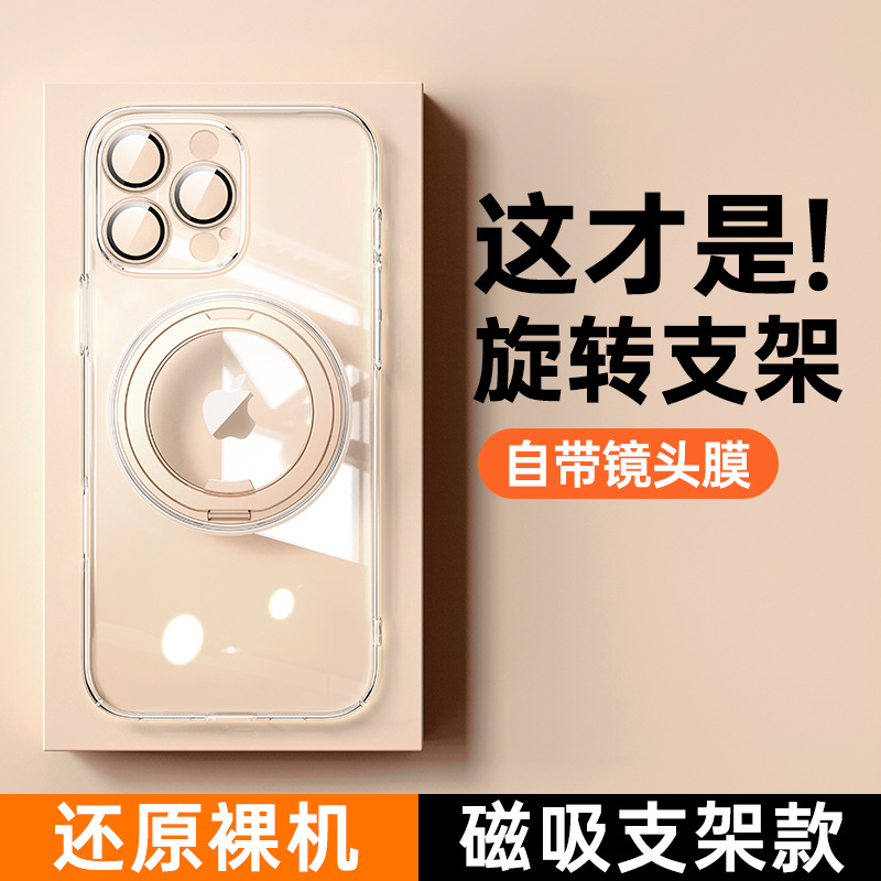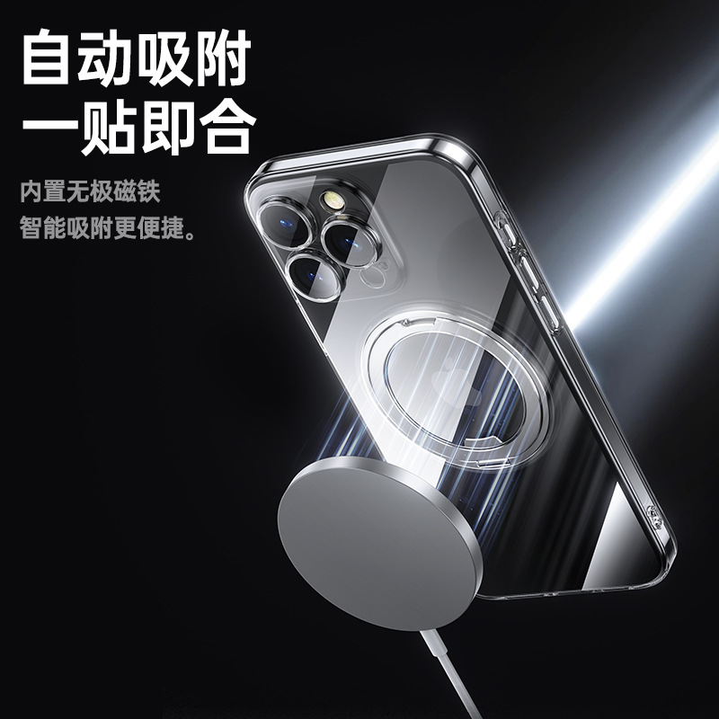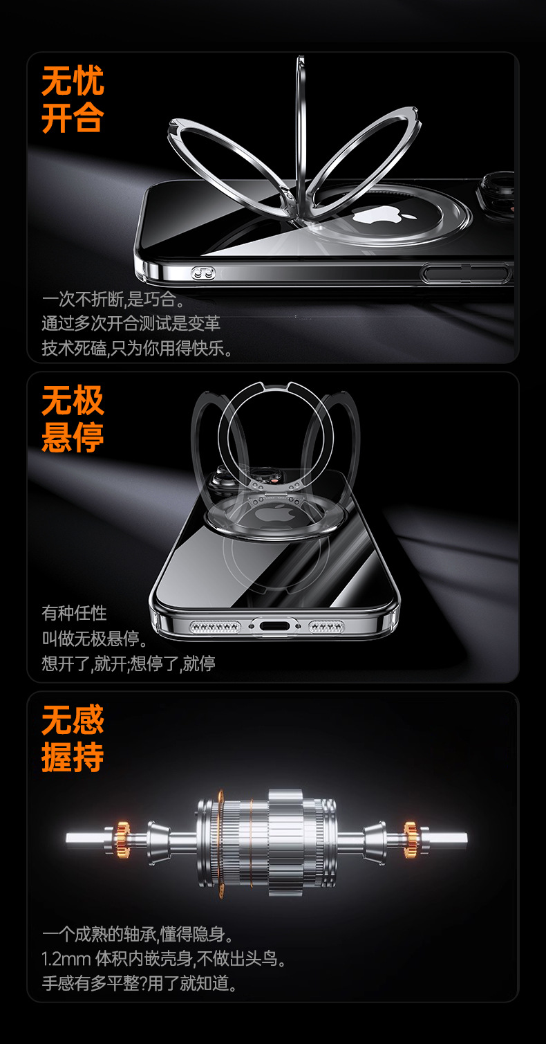 适用苹果16ProMax手机壳电镀iPhone16磁吸360齿轮支架14Pro防摔壳