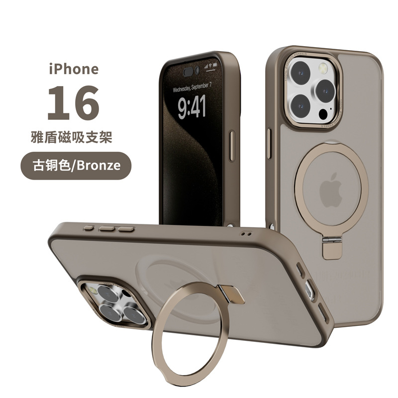 适用苹果16promax磁吸支架手机保护套防摔iphone15肤感手机壳跨境