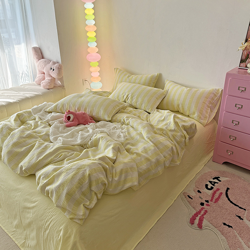 春款A类全棉双层皱皱纱色织水洗棉四件套ins多巴胺条纹床品