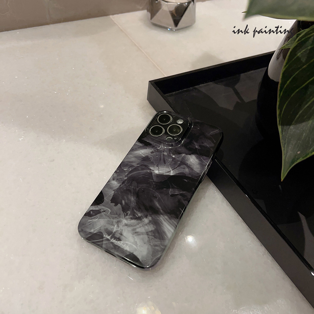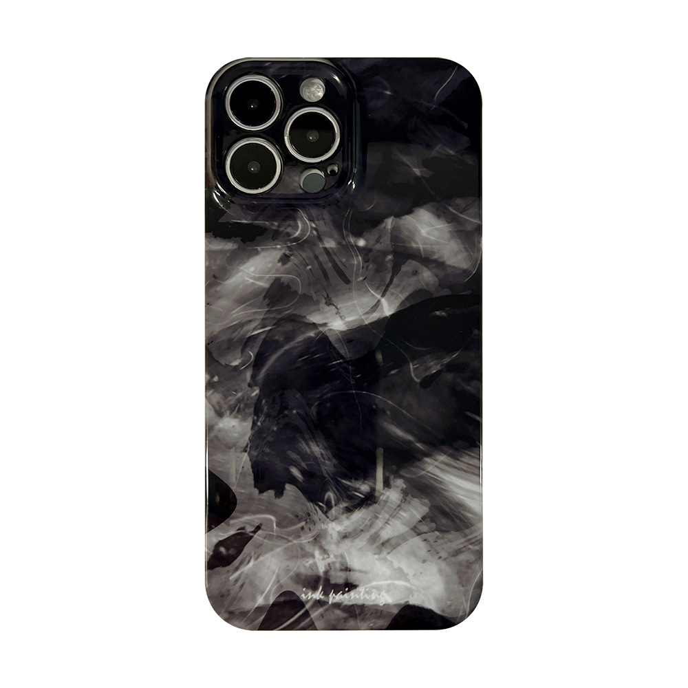 黑白墨晕染适用16promax手机壳苹果13简约11硬14菲林iPhone冷淡15