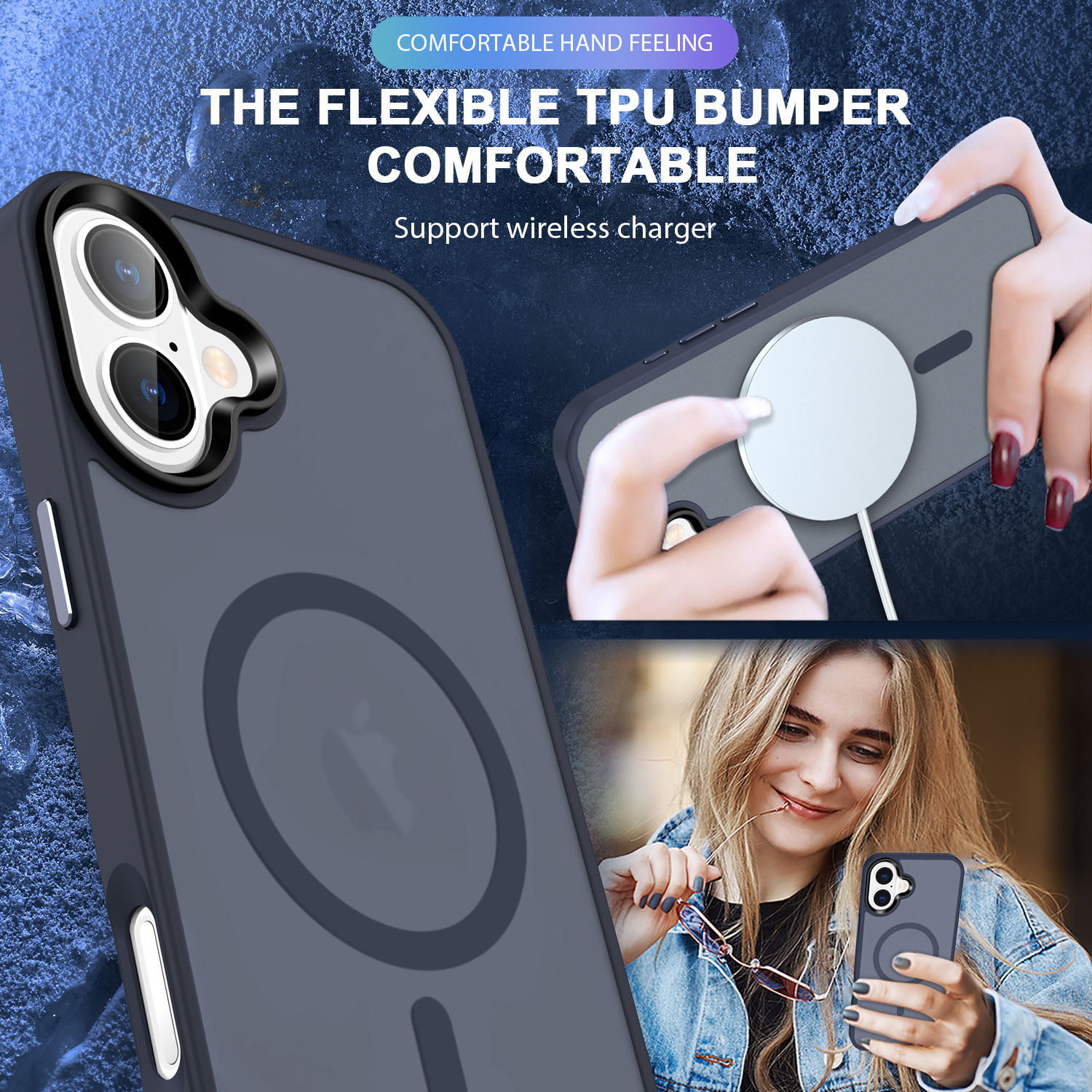跨境适用苹果16手机壳15磨砂磁吸壳14简约无线充13pro手机保护套