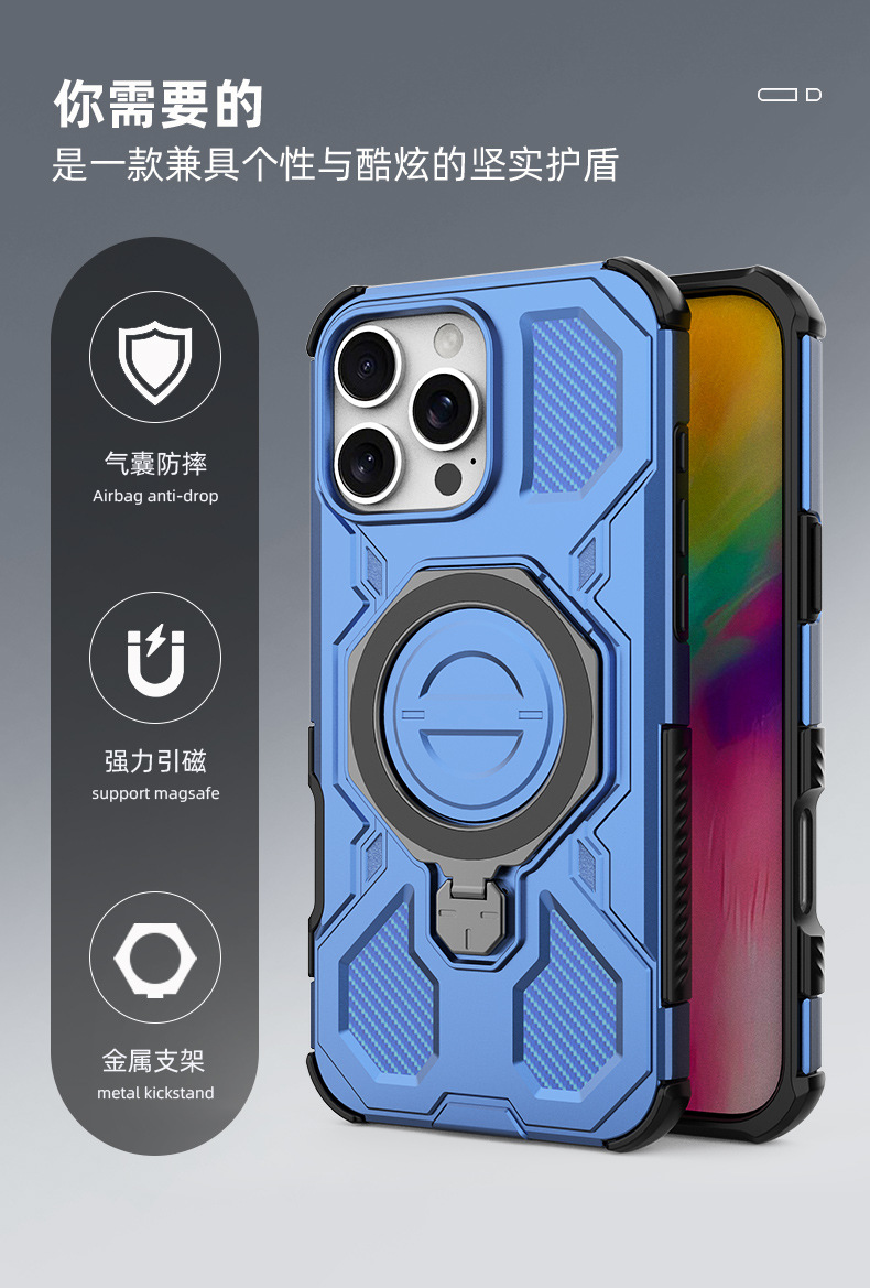 适用苹果16ProMax手机壳旋转支架二合一防摔ipone17保护套手机壳
