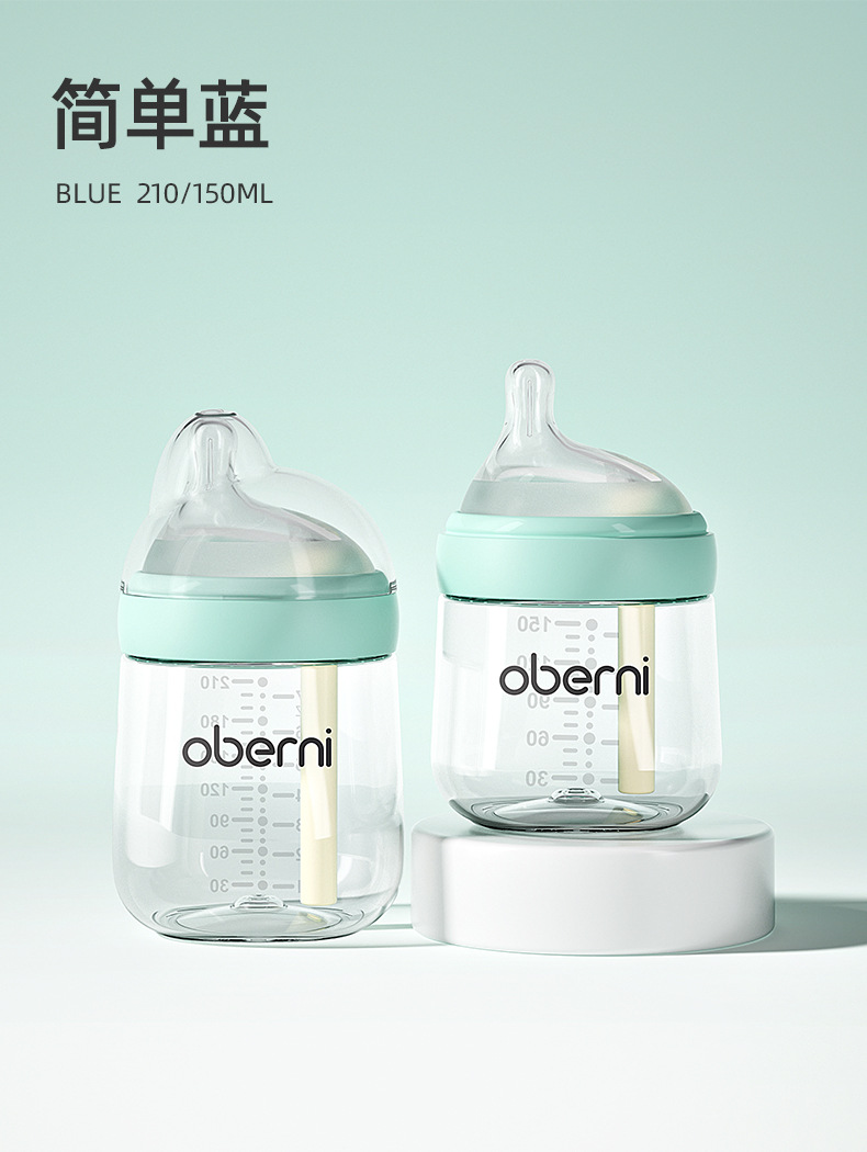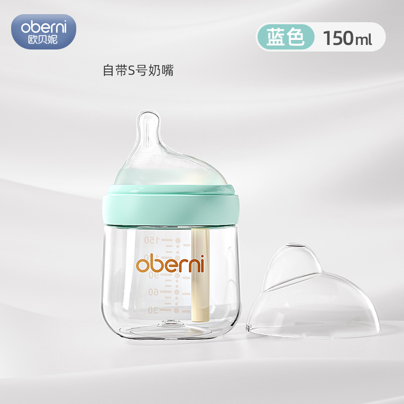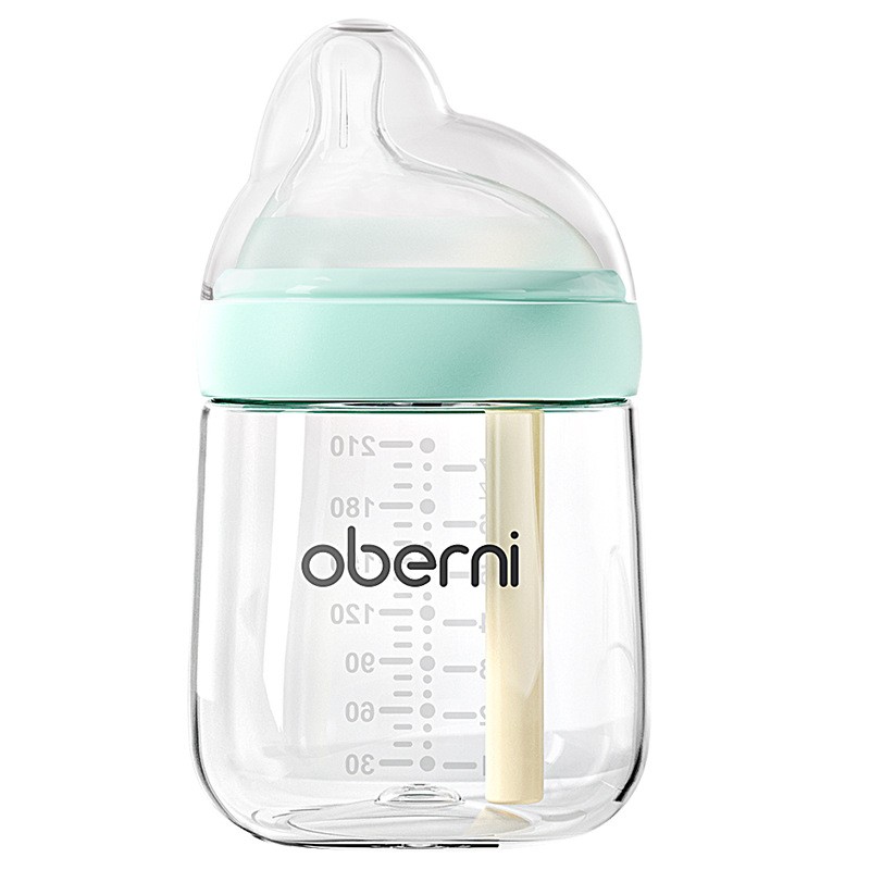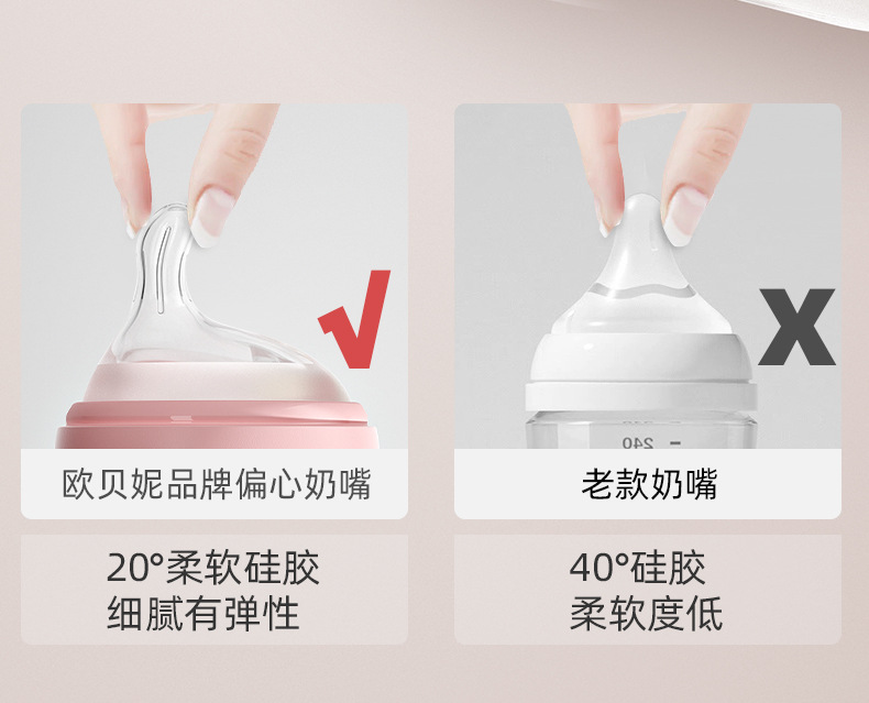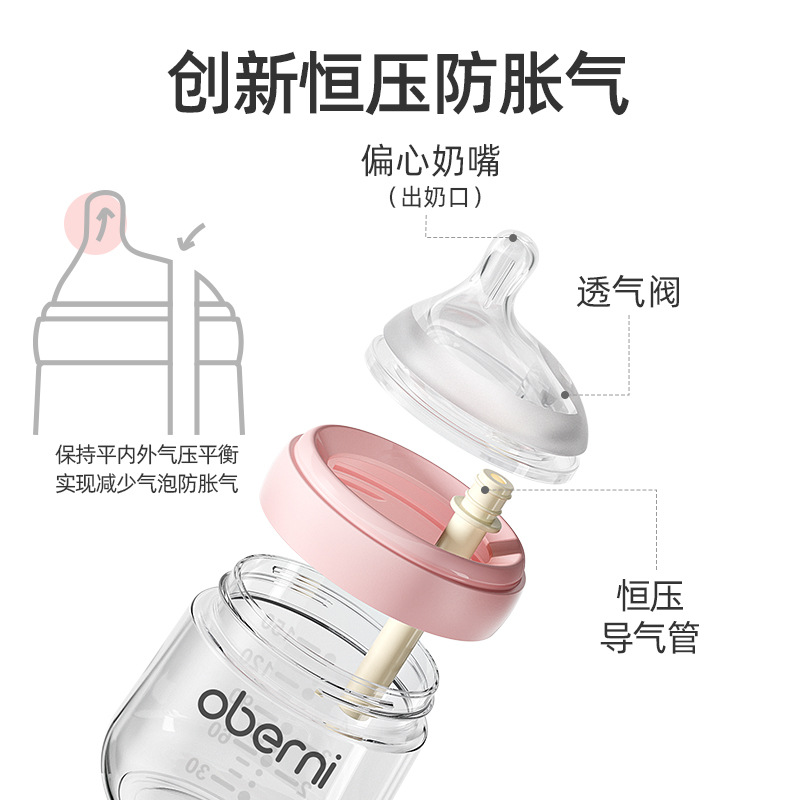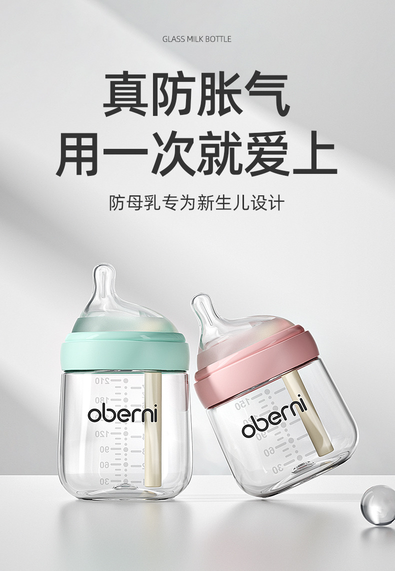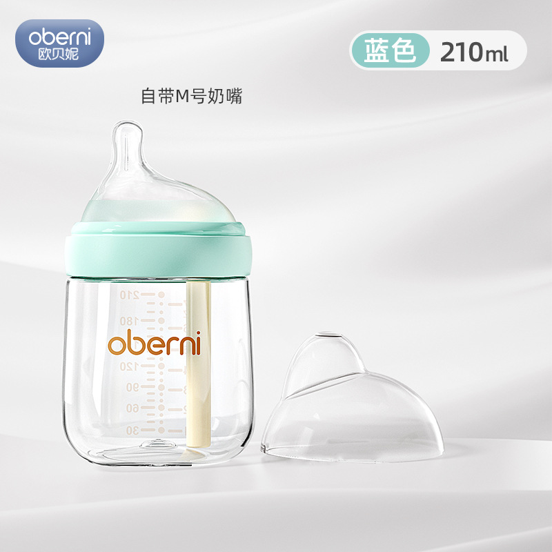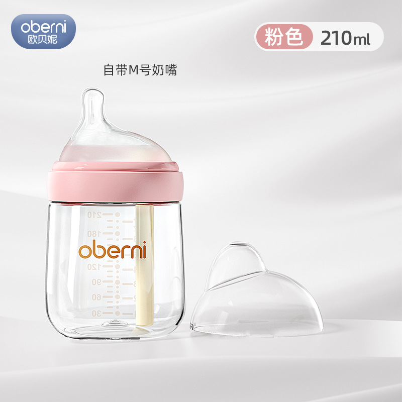 欧贝妮210ml偏心奶嘴新生儿玻璃奶瓶防胀气防吐奶防呛婴儿奶瓶