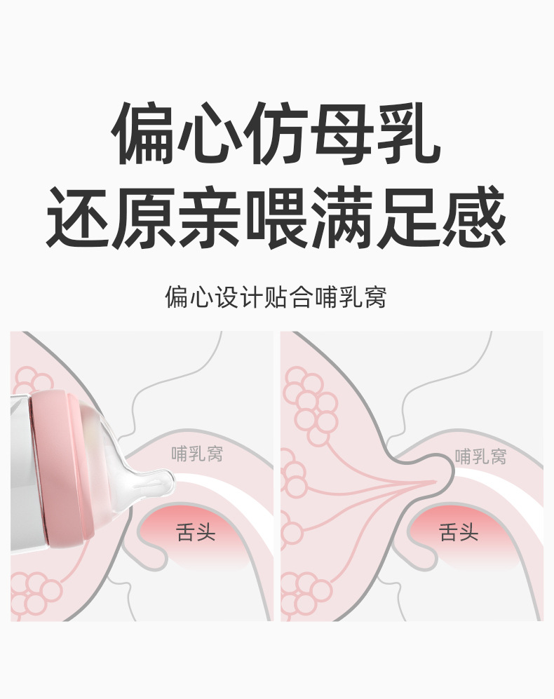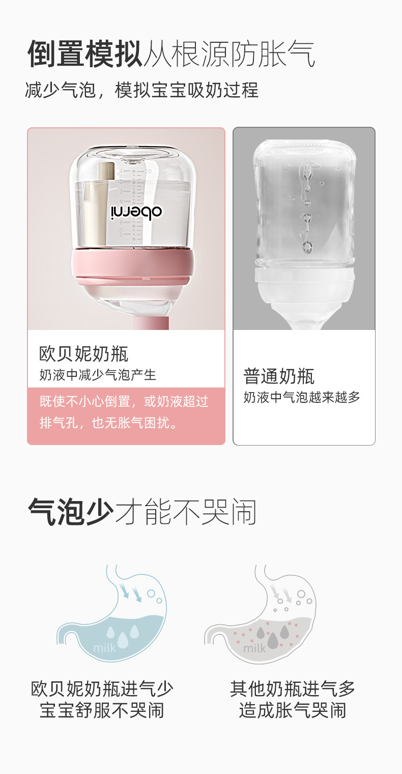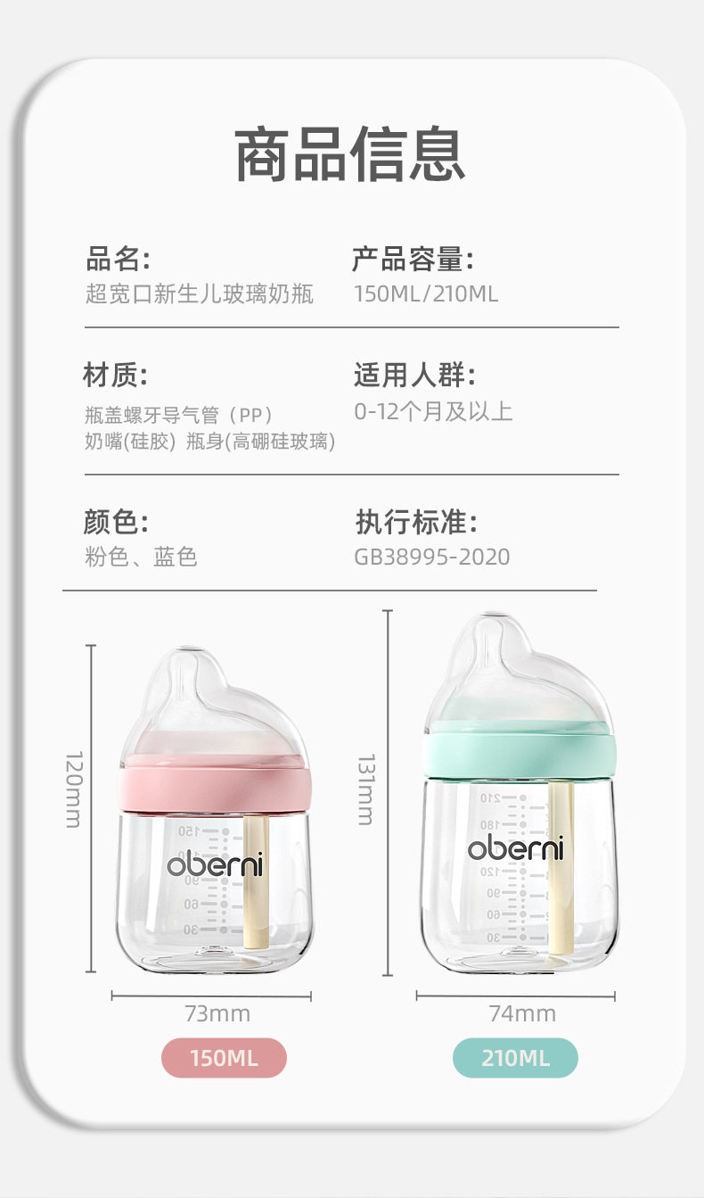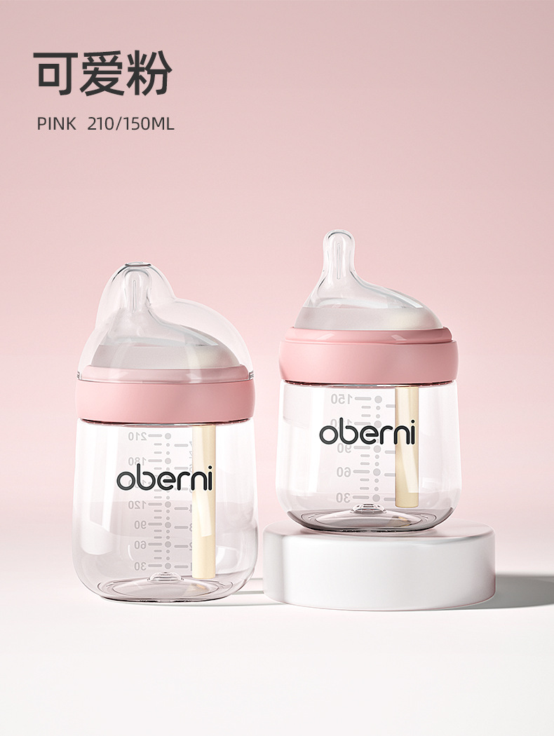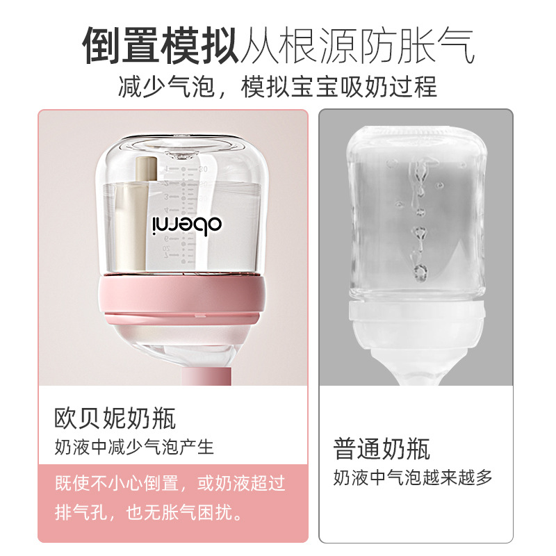 欧贝妮210ml偏心奶嘴新生儿玻璃奶瓶防胀气防吐奶防呛婴儿奶瓶