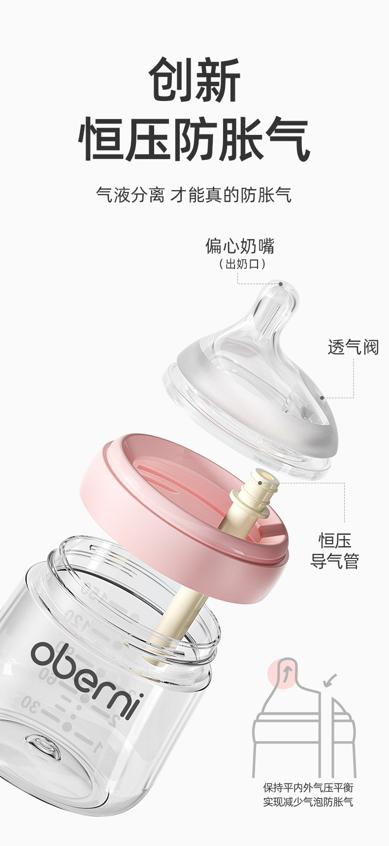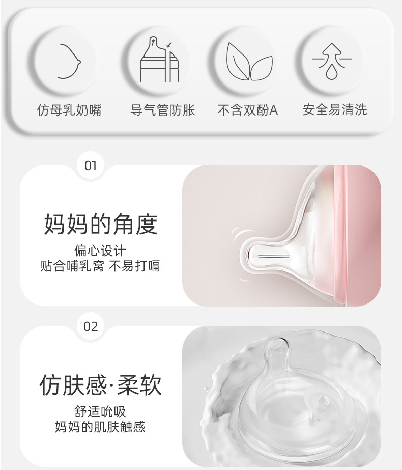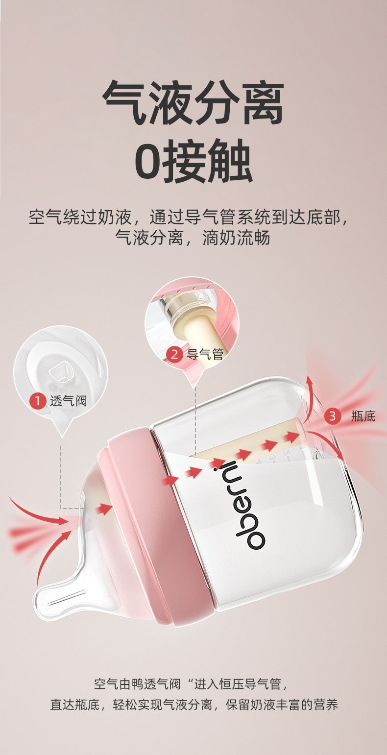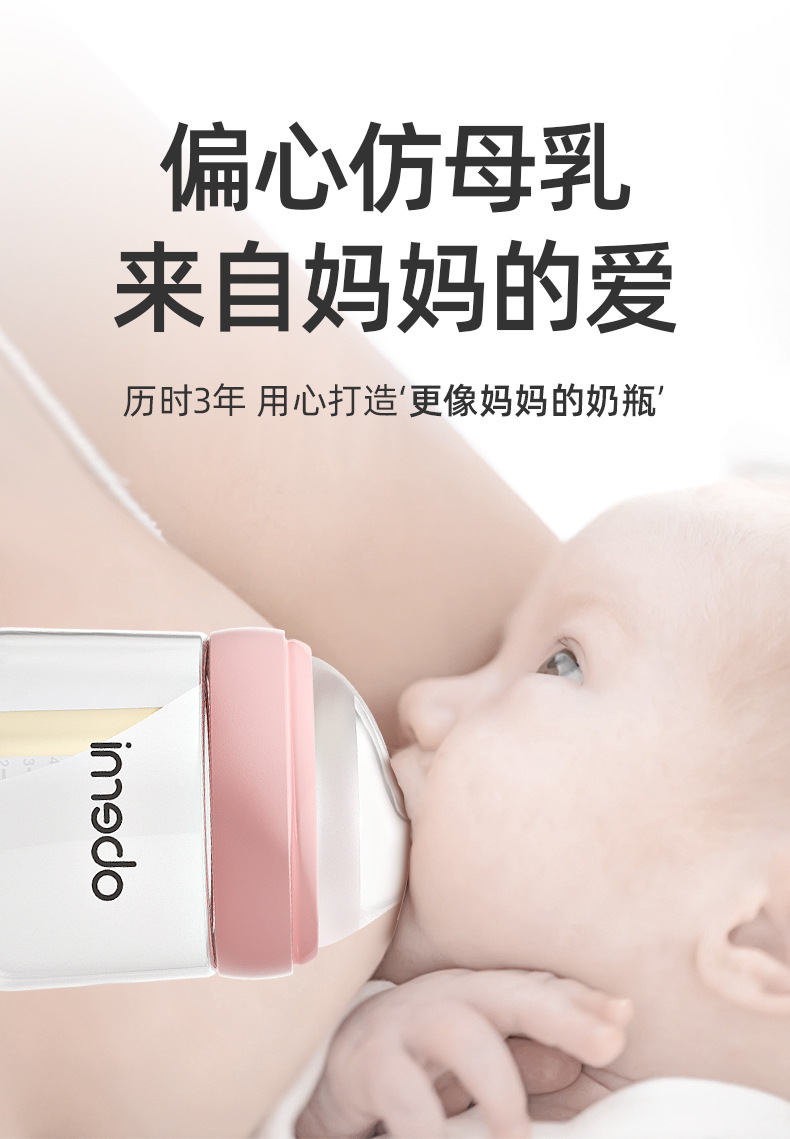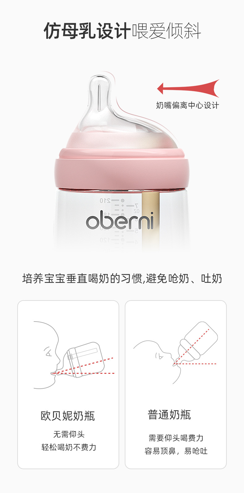 欧贝妮210ml偏心奶嘴新生儿玻璃奶瓶防胀气防吐奶防呛婴儿奶瓶