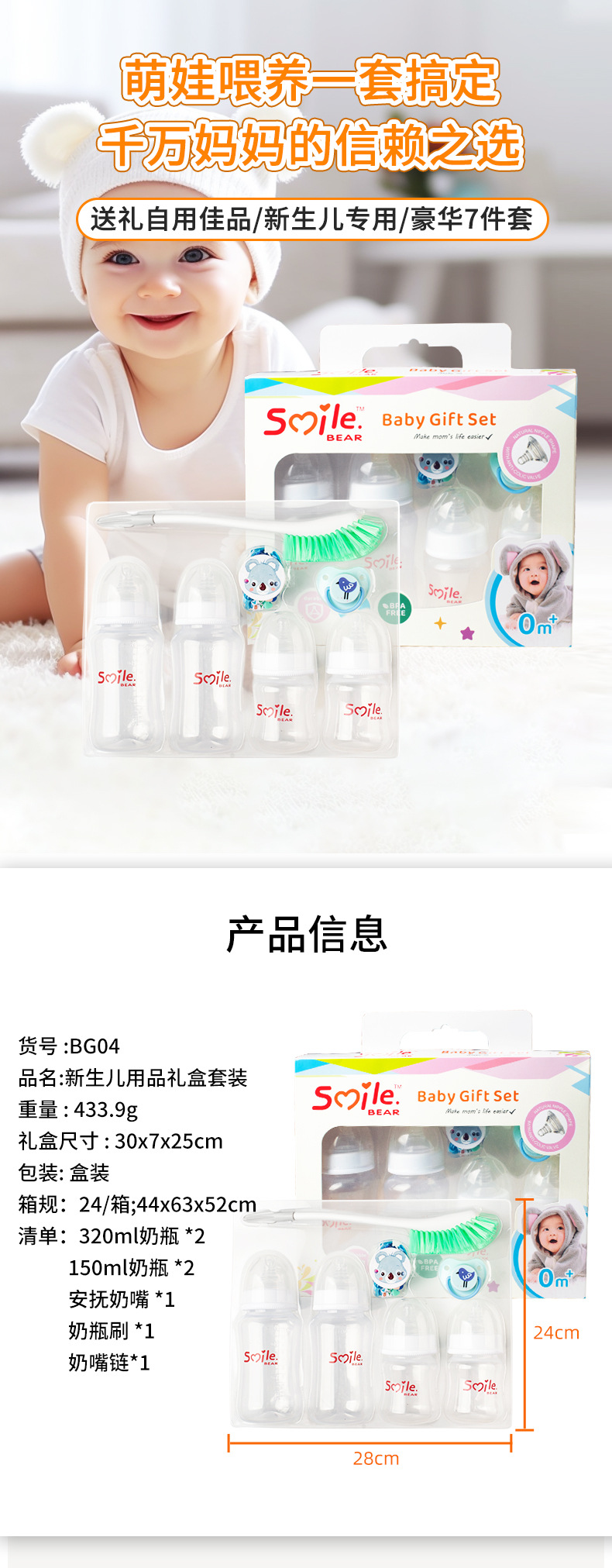 母婴用品新生儿奶瓶礼盒礼品套装婴儿pp奶瓶奶刷七件套