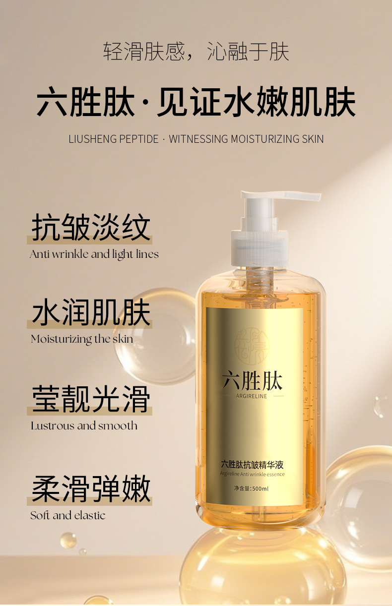 抗皱精华液500ml大瓶院装花月情六胜肽抗皱精华液面部精华液抗皱