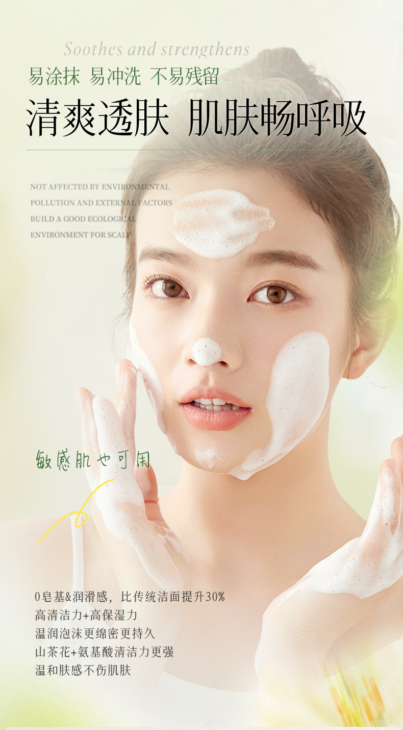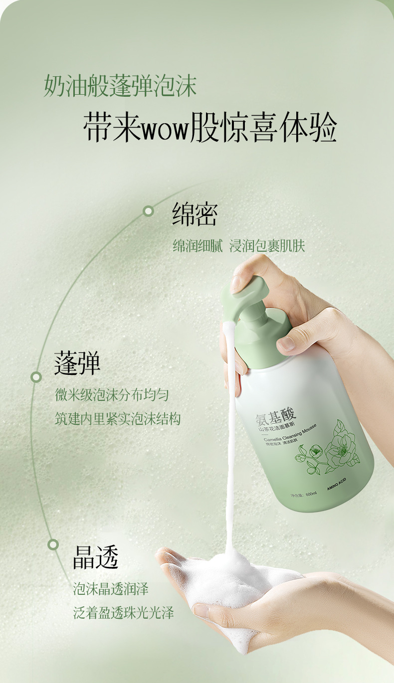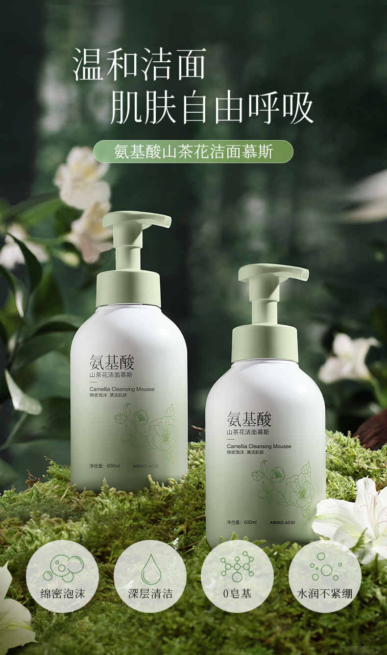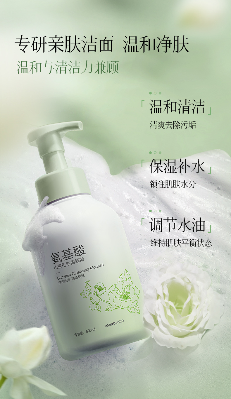 氨基酸山茶花洁面慕斯升级版泡沫绵密深层清洁控油洁面乳