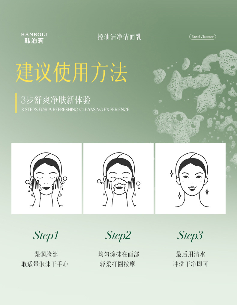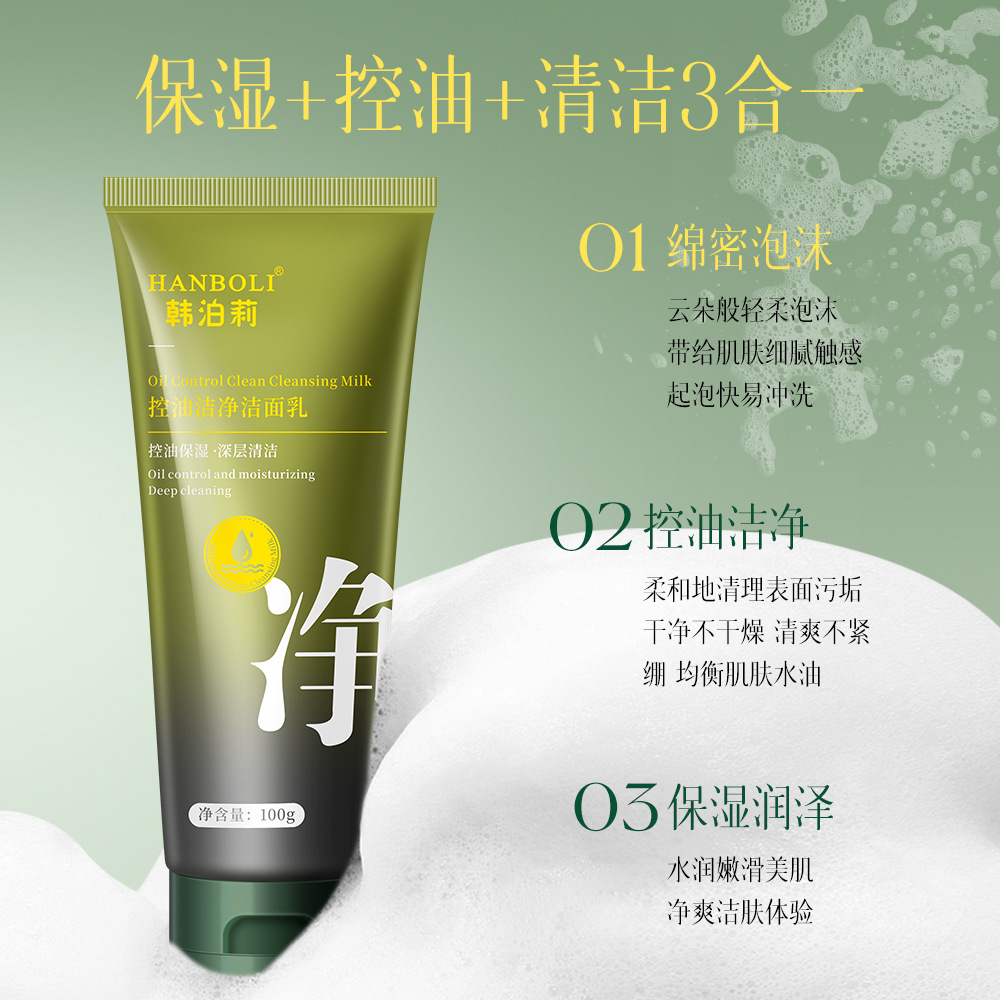 控油洁净洁面乳保湿控油清洁3合一泡沫绵密易冲洗男女通用