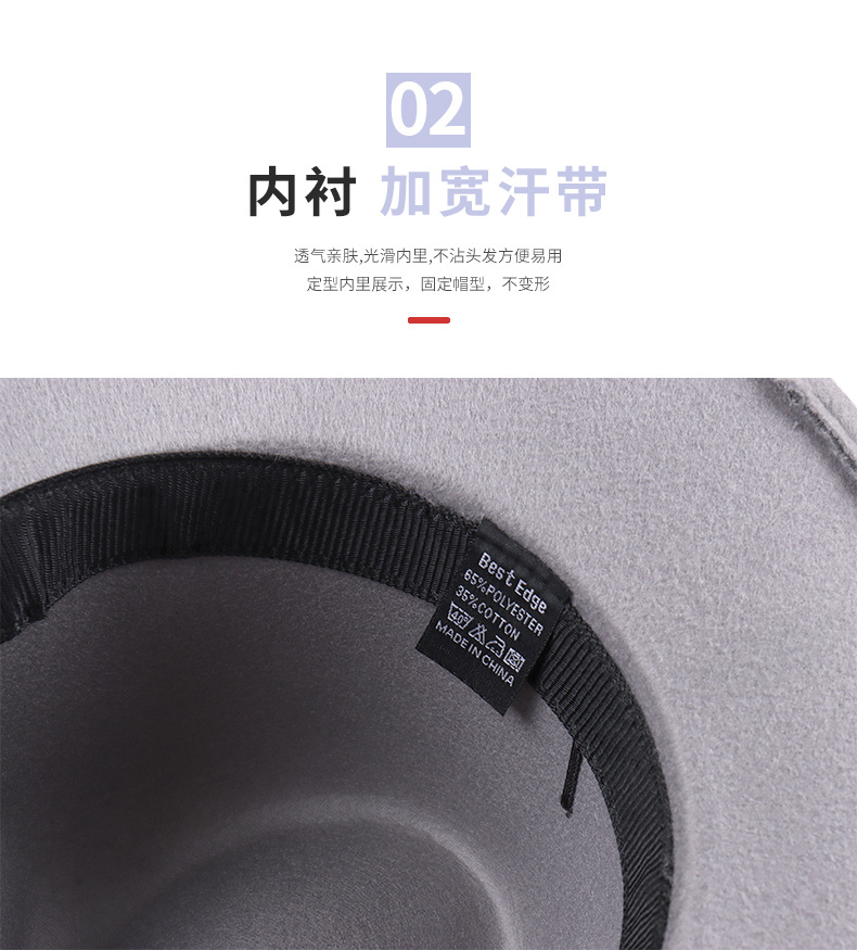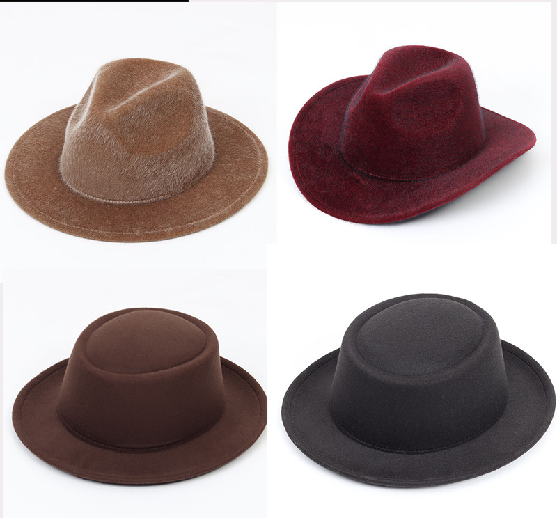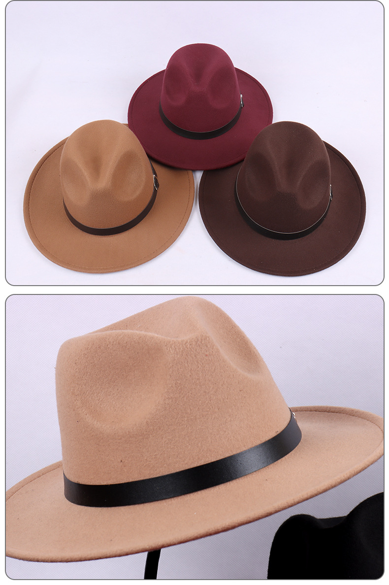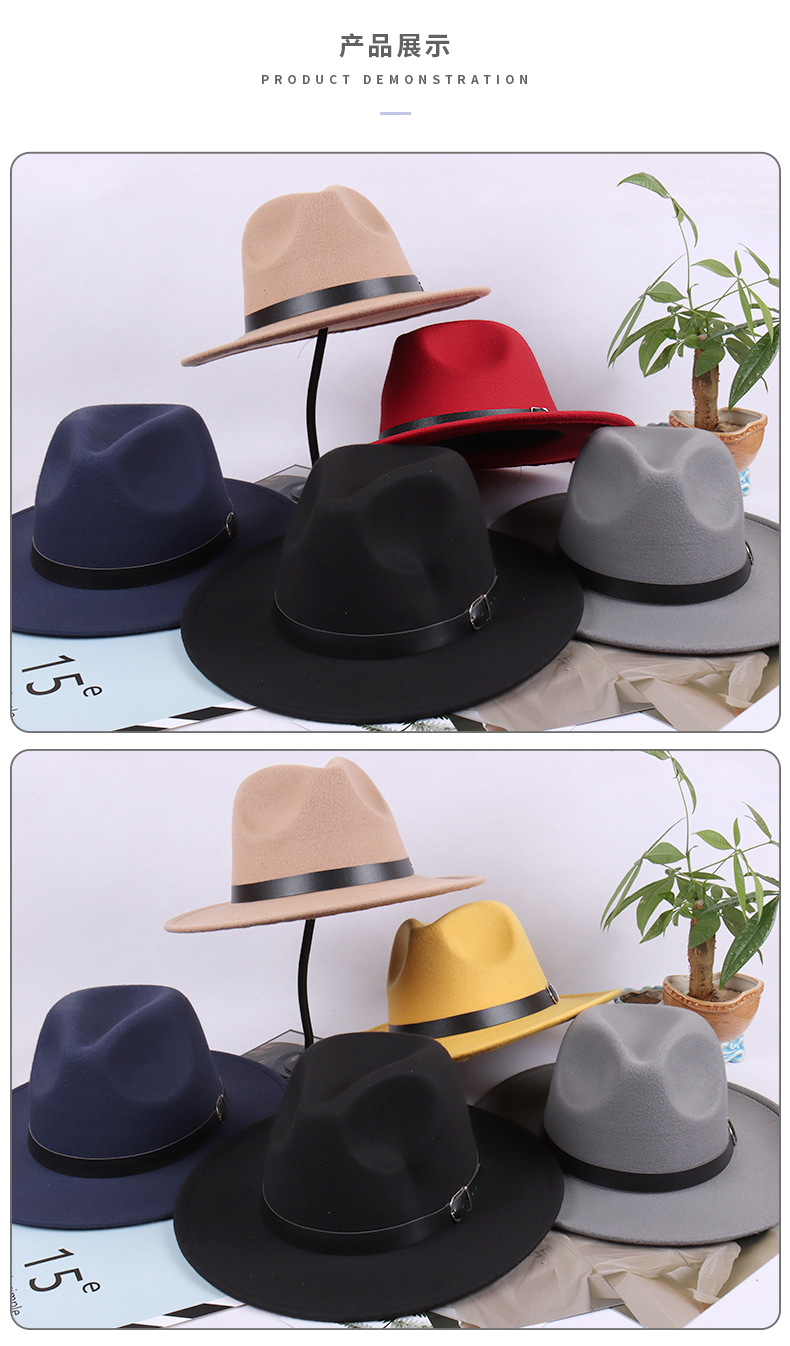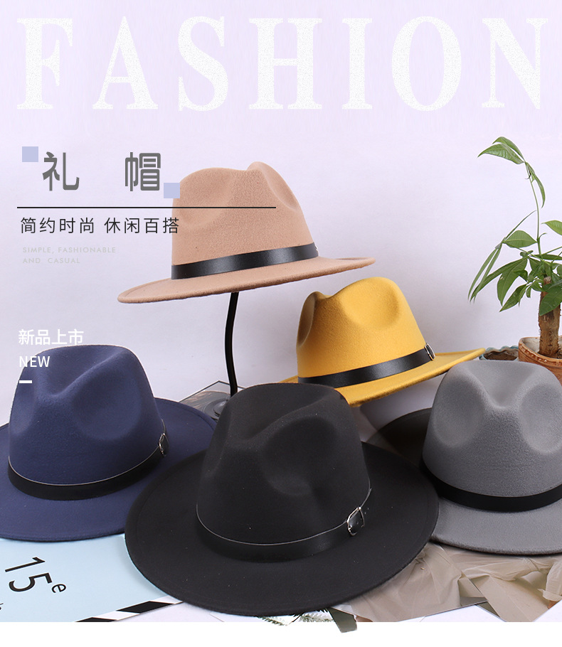 纯色毛毡帽英伦复古爵士帽男女平檐绅士帽平顶礼帽