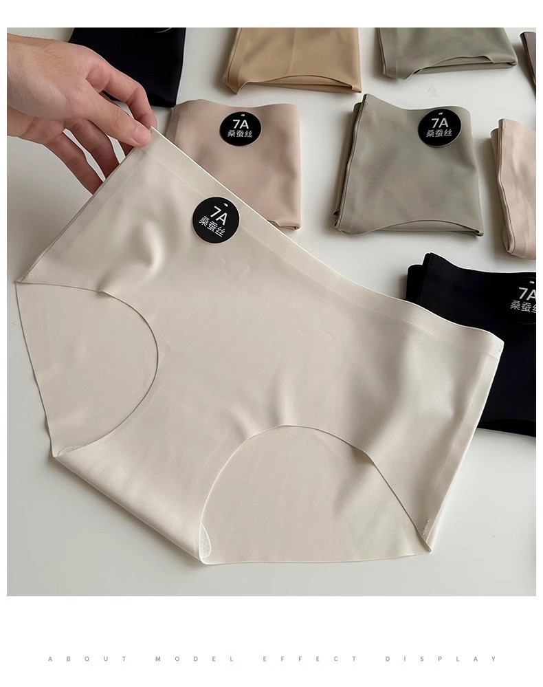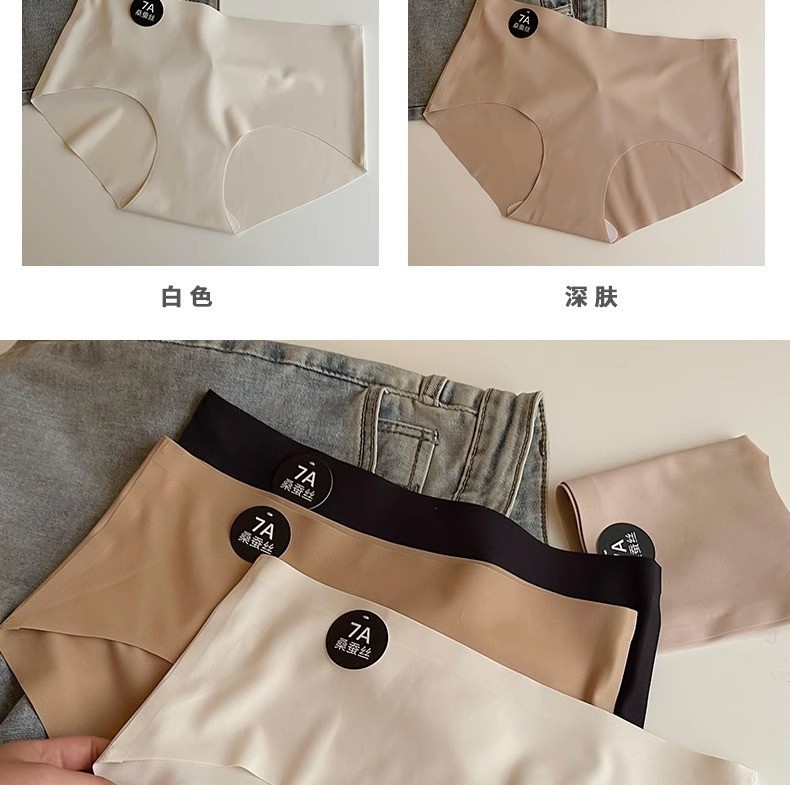 7A桑蚕丝抗菌无痕冰丝内裤少女简约色系纯色光版中腰女生内裤