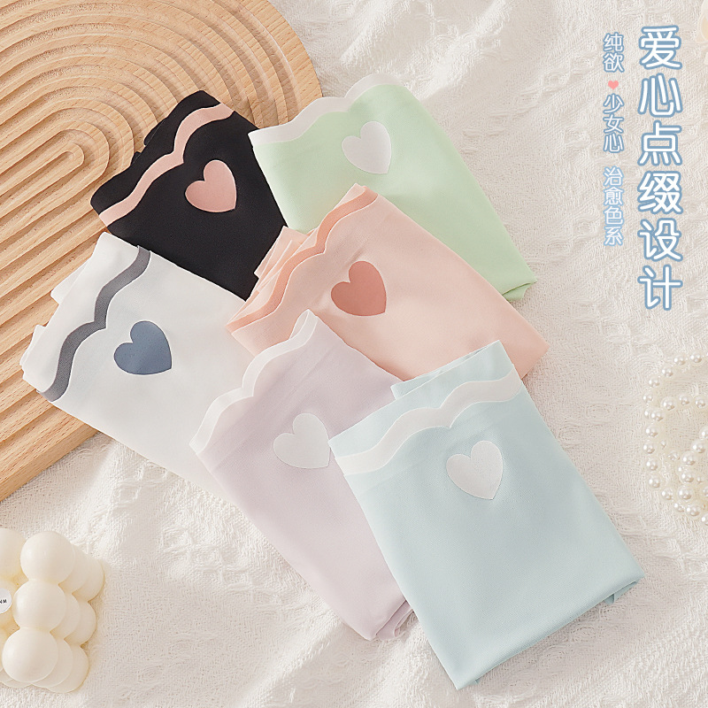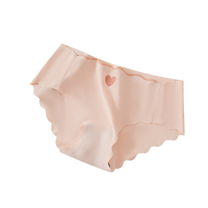 日系薄款无痕冰丝爱心内裤女士中腰大码纯色石墨烯棉裆少女三角裤