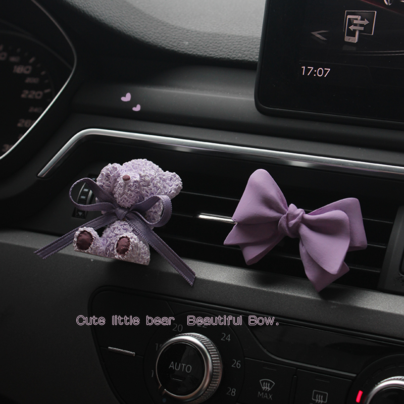 紫色蝴蝶结小熊车载香薰汽车空调出风口香水扩香石摆件