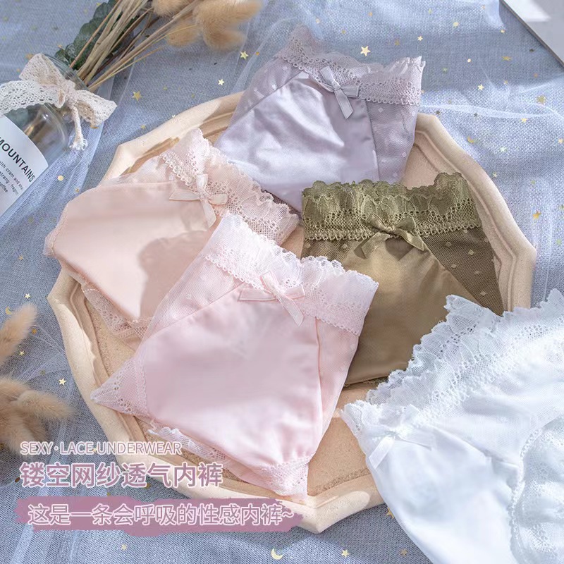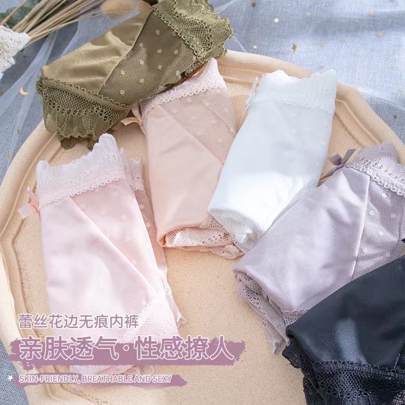 女士蕾丝内裤女中腰抗菌裆冰丝少女性感甜美舒适诱惑透气三角短裤