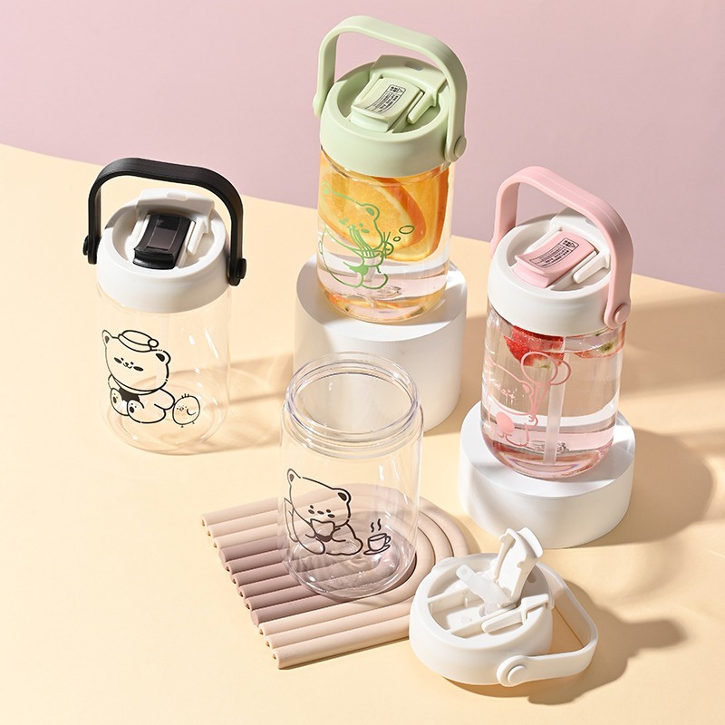 网红情侣双饮吸管杯卡通可爱女生学生水杯高颜值便携式花茶杯