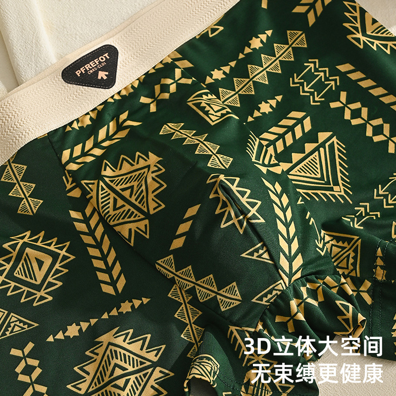 男士内裤男冰丝印花抗菌透气平角裤男款四角裤头