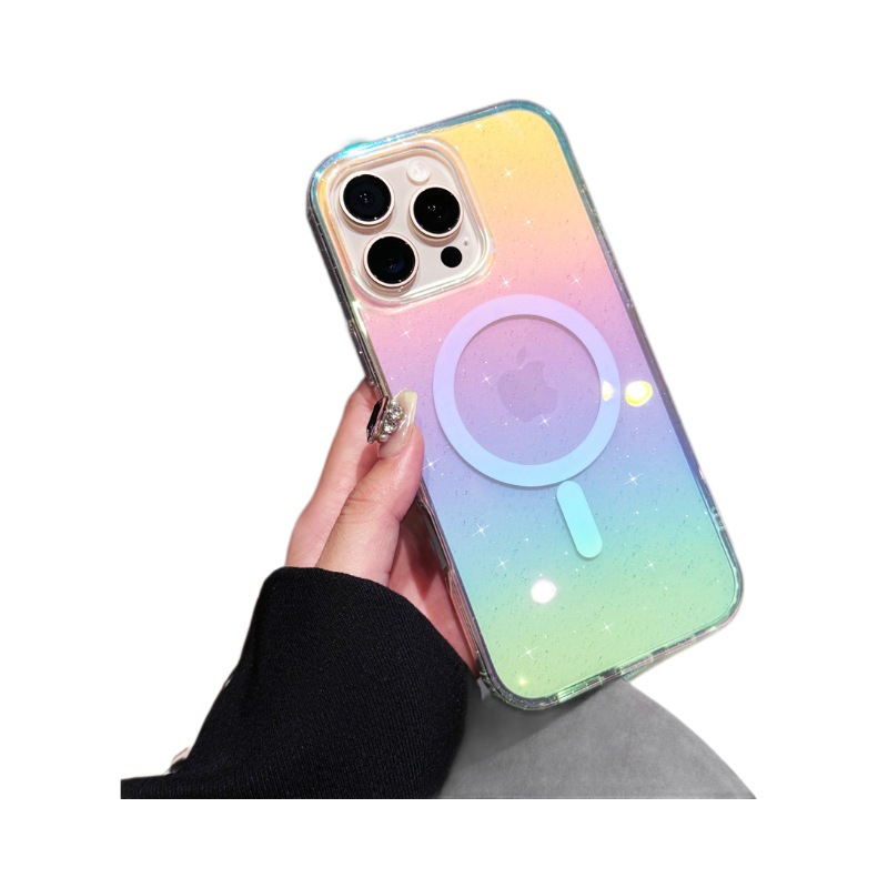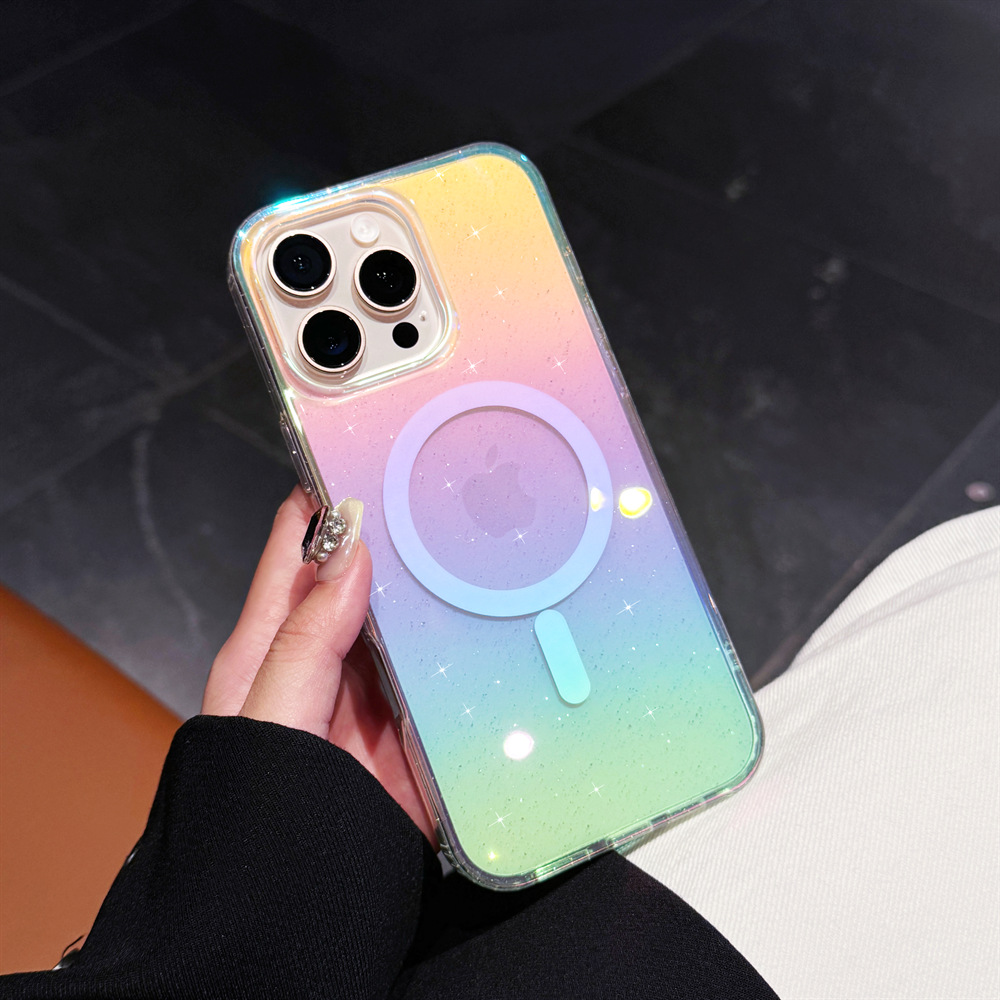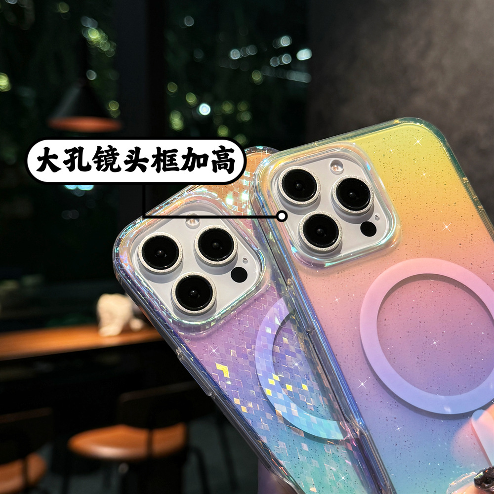 彩镀钻石纹适用苹果16手机壳17透明闪粉iphone15Pro磁吸壳保护套
