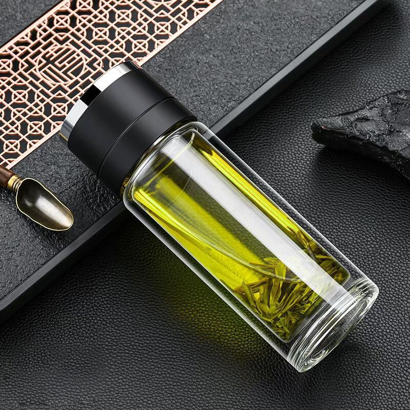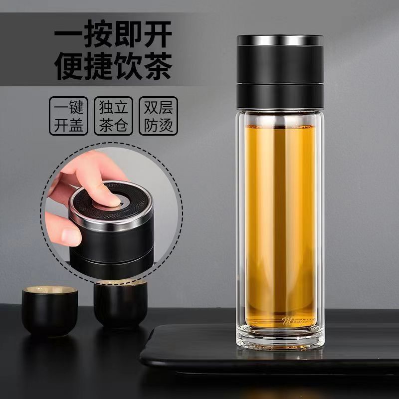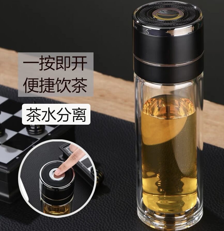 代发速开杯茶水分离杯双层泡茶杯一键开盖玻璃杯车载水杯高颜值杯