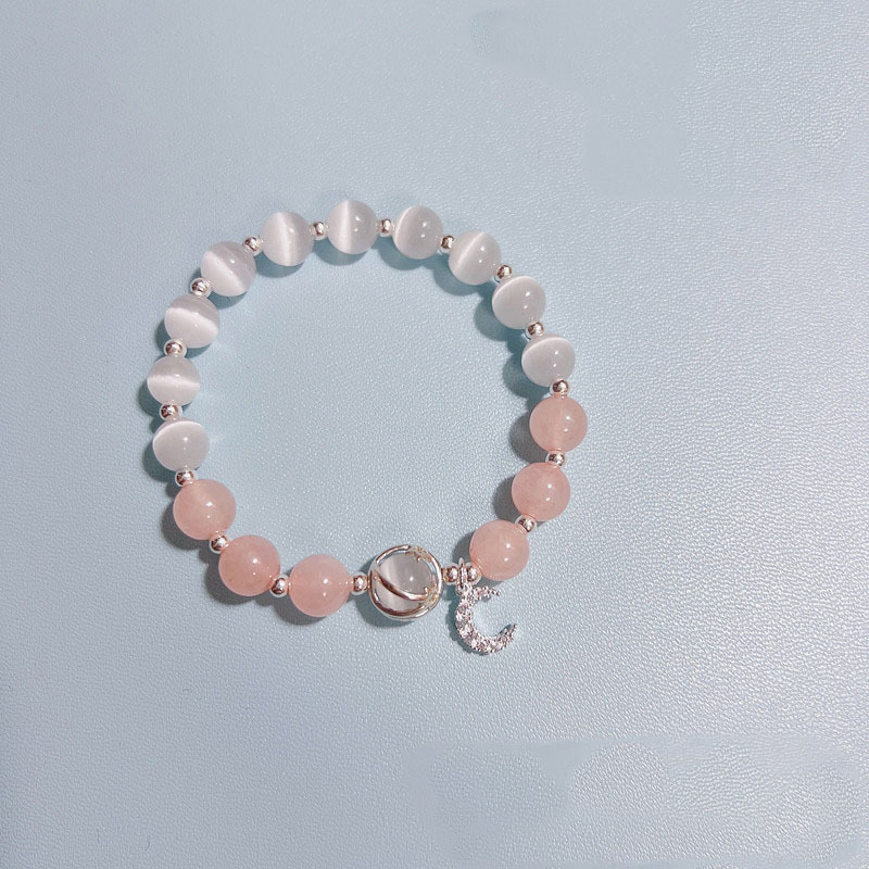 天然ins森系粉晶女生手链猫眼石月亮送闺蜜生日礼物手串