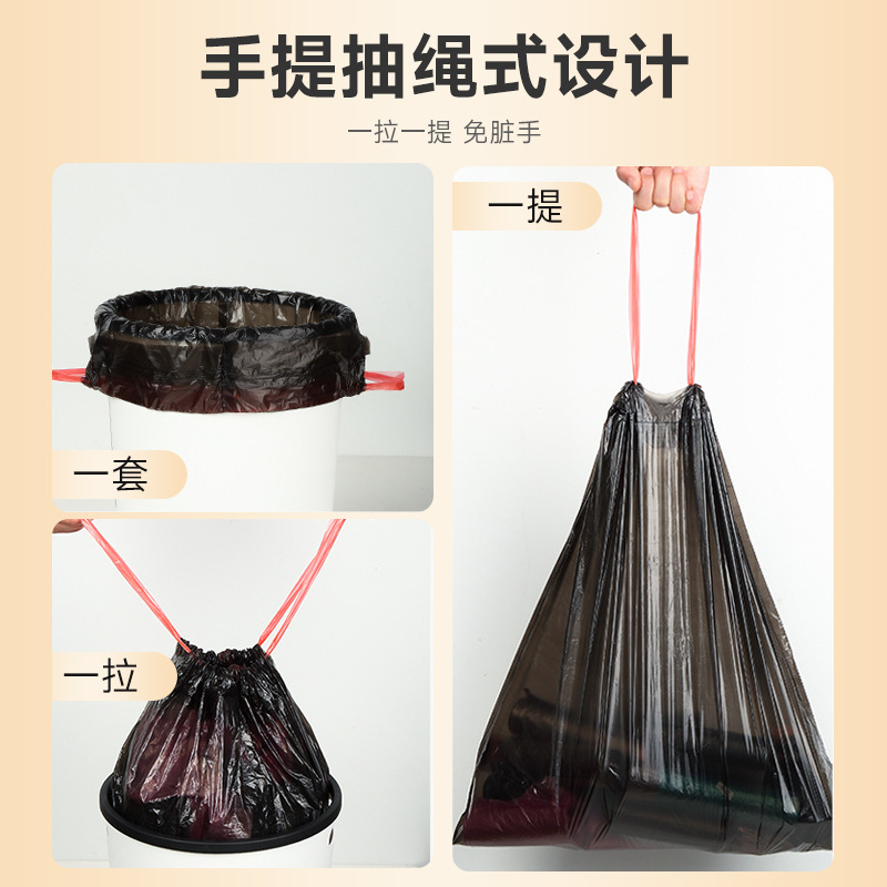 抽绳垃圾袋厚款家用超厚大卷一次性加厚大号厨房黑色手提式塑料袋