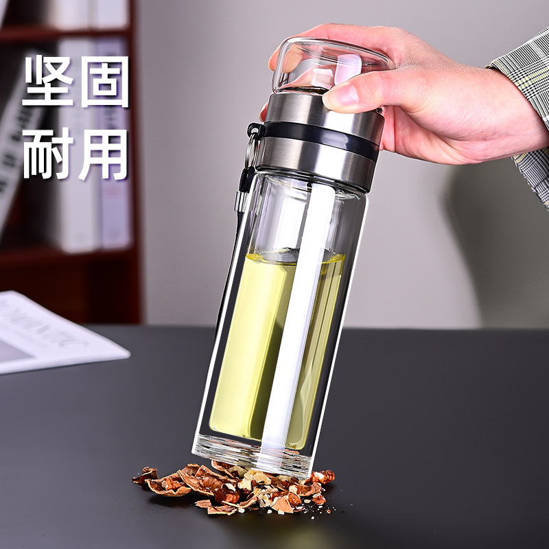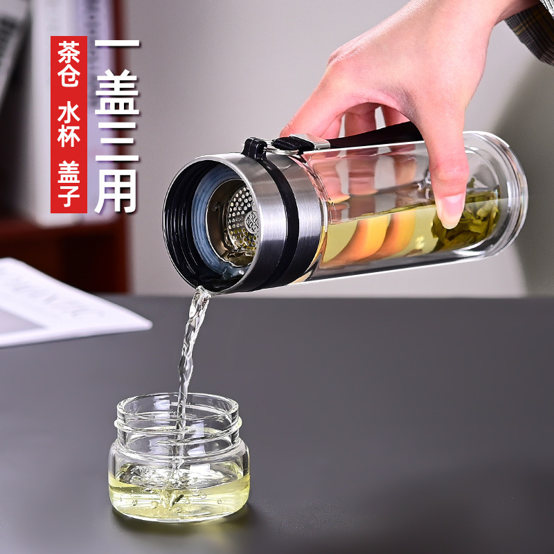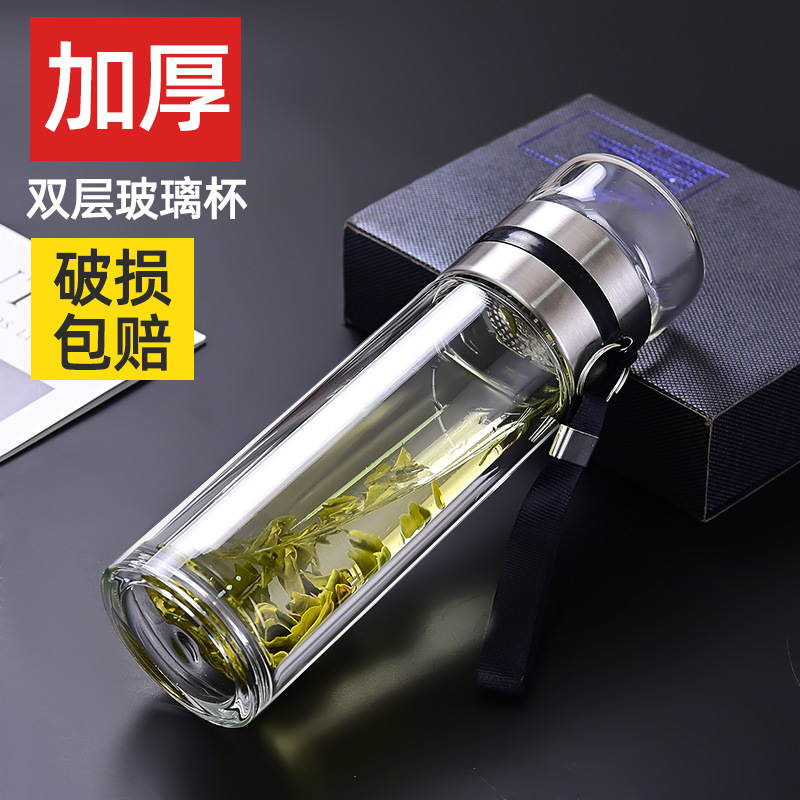 创意礼品水杯厂家双层玻璃杯茶水分离杯