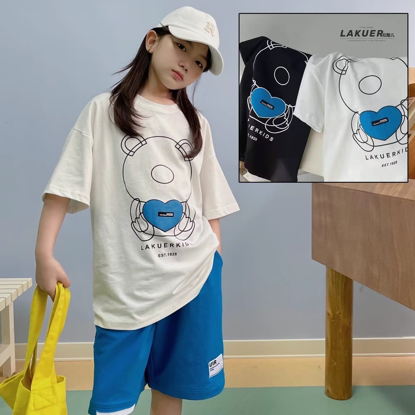 童装夏季新款设计感小众爱心印花T恤男女童棉质短袖上衣半袖