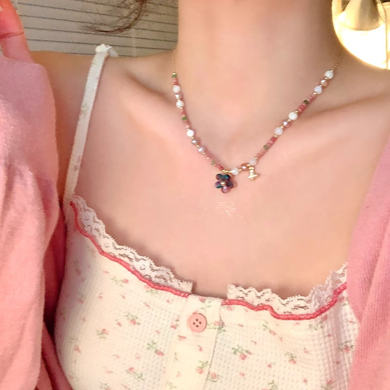 春日来信~天然石彩色串珠花朵吊坠项链女多巴胺度假风颈链锁骨链