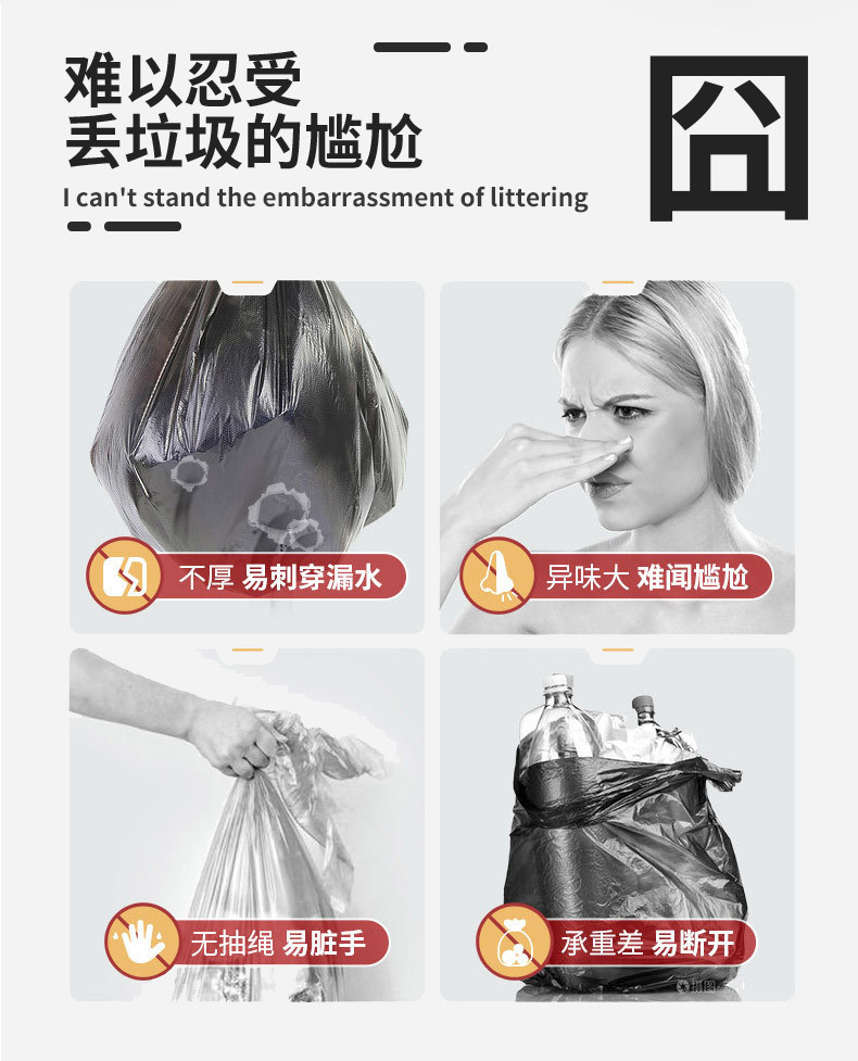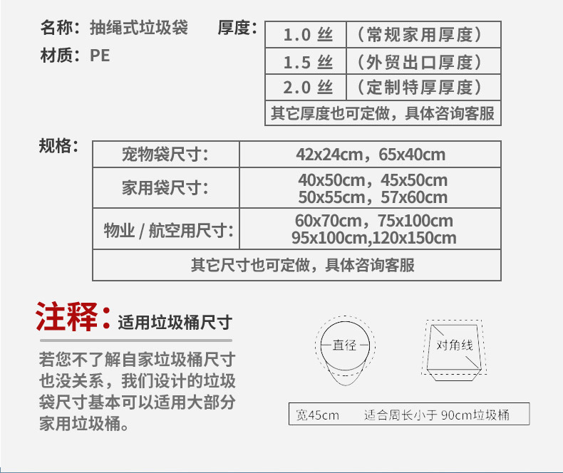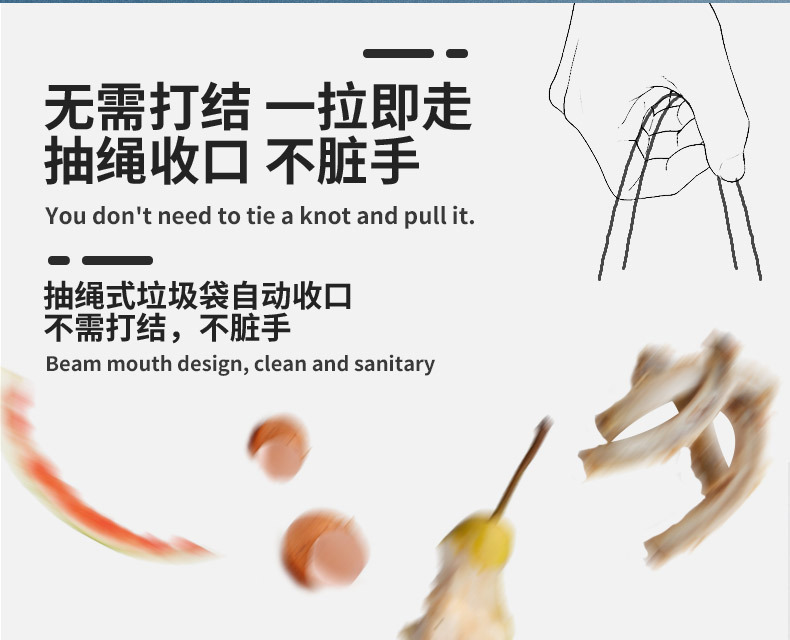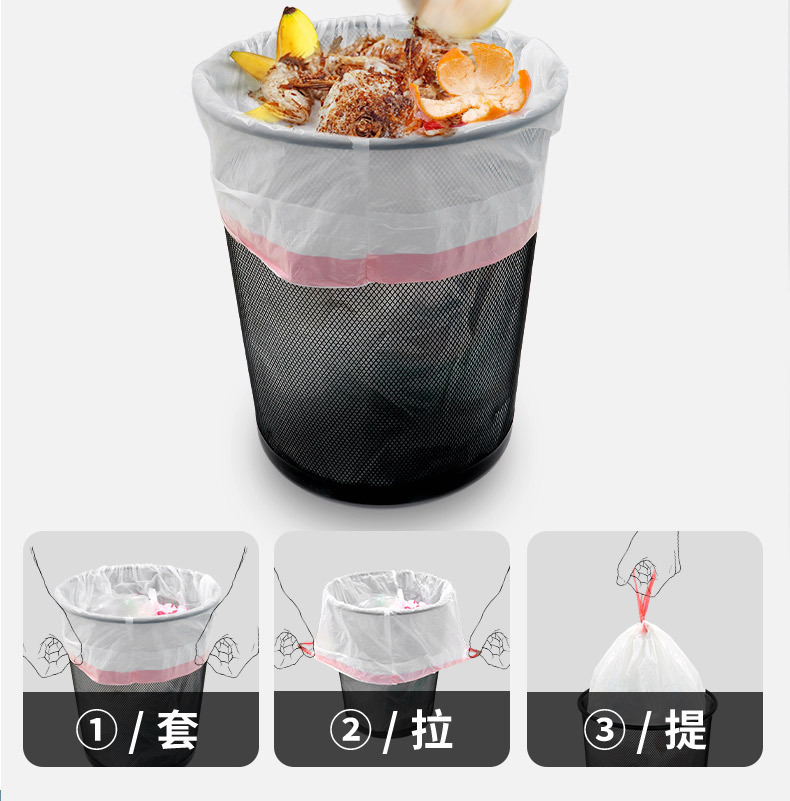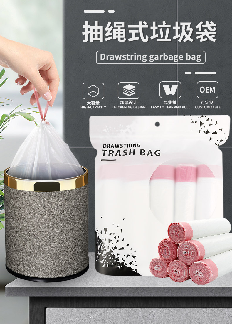 抽绳垃圾袋家用加厚手提点断式厨房塑料袋抽绳式手提