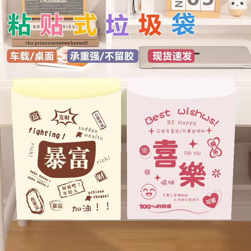 车载垃圾袋粘贴式办公室学生宿舍桌面课桌边专用可爱自粘垃圾袋子
