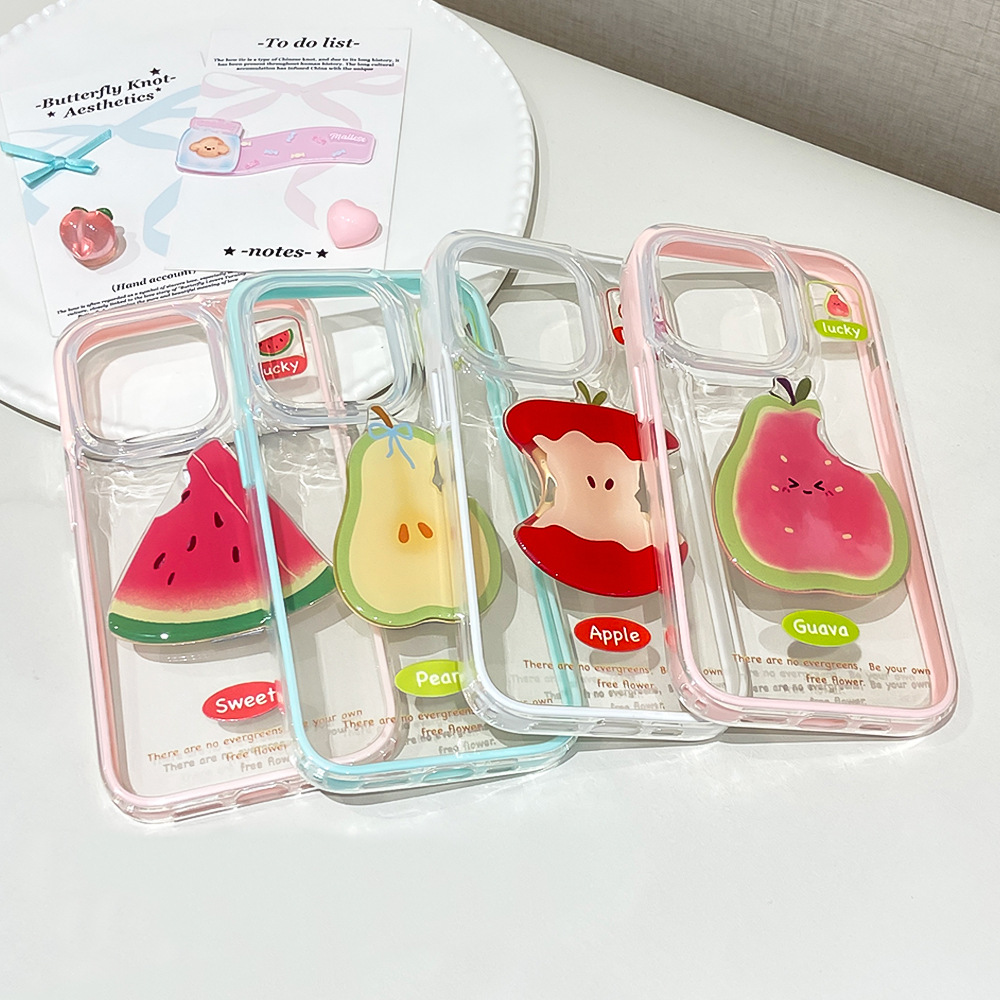 夏日水果支架适用苹果16ProMax手机壳多巴胺撞色二合一防摔苹果14