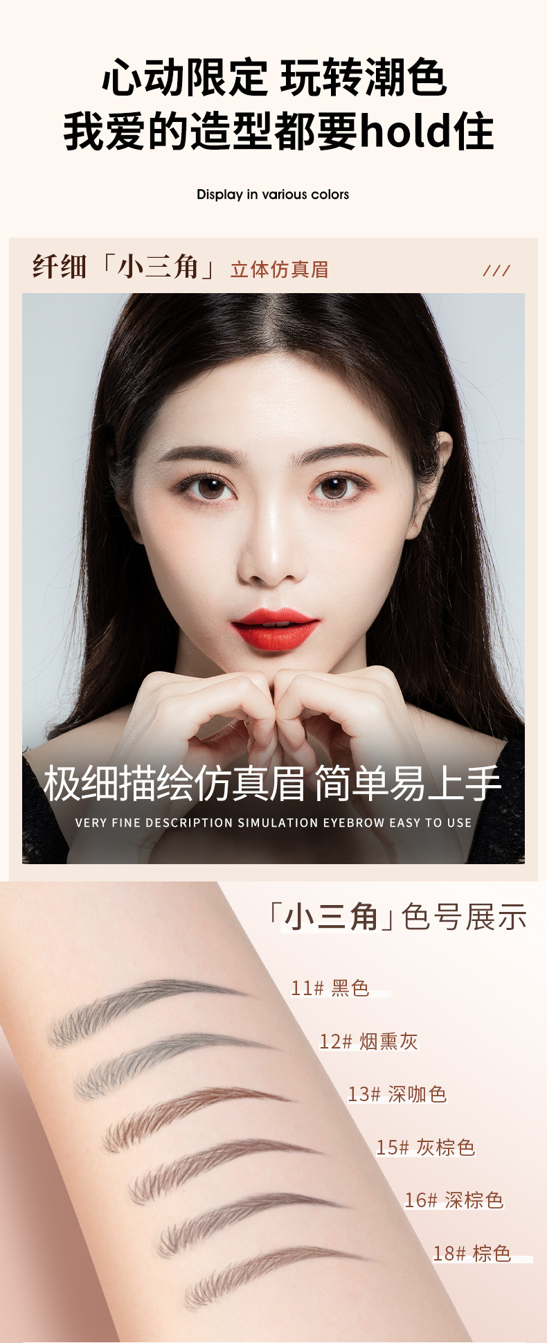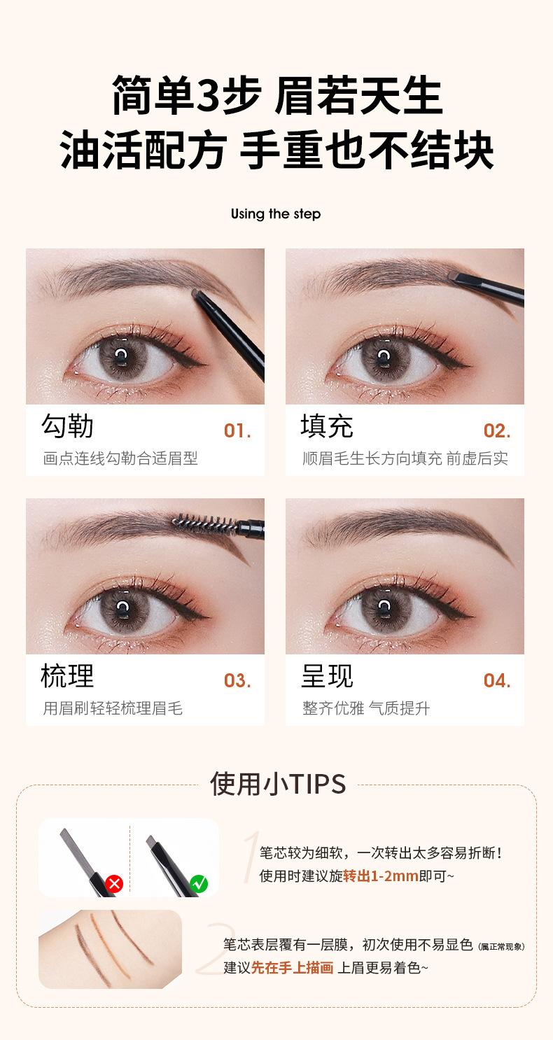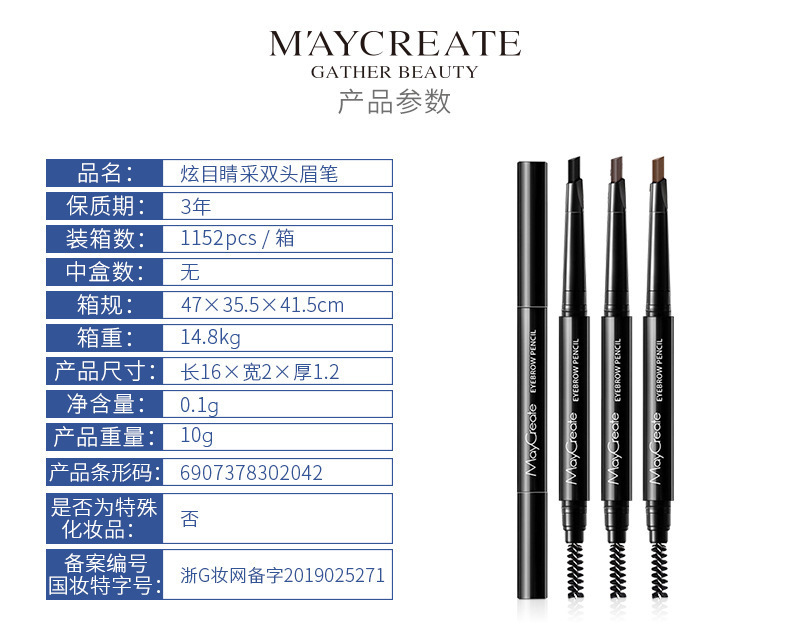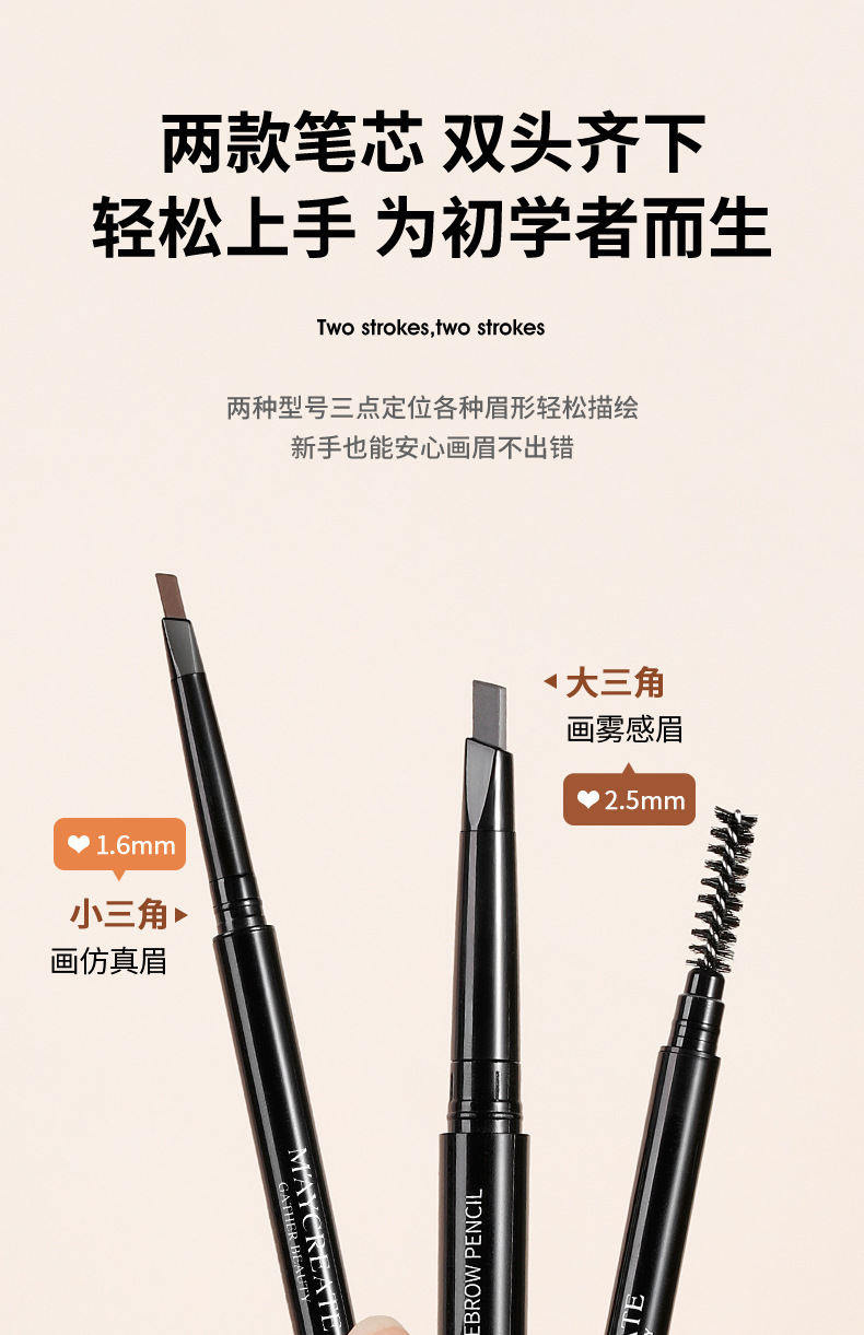 健美创研新款三角眉笔双头超细头女防水防汗自然持久厂家直销
