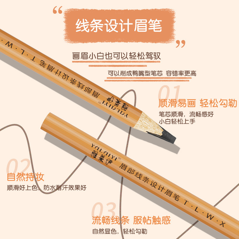 纹绣眉笔野生线条定位笔木质硬芯防水防汗化妆纹绣师专用砍刀眉笔