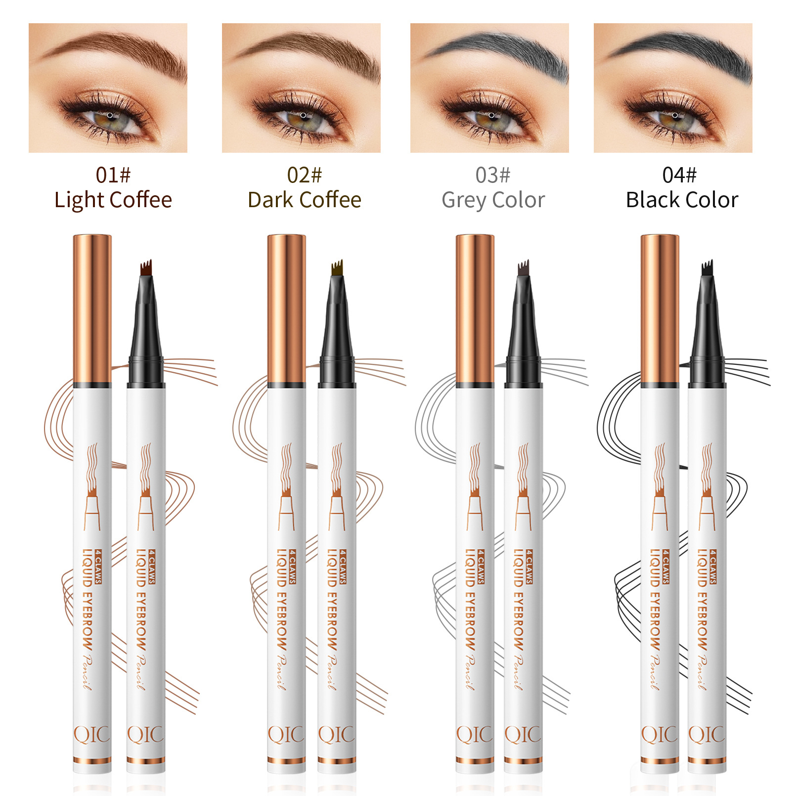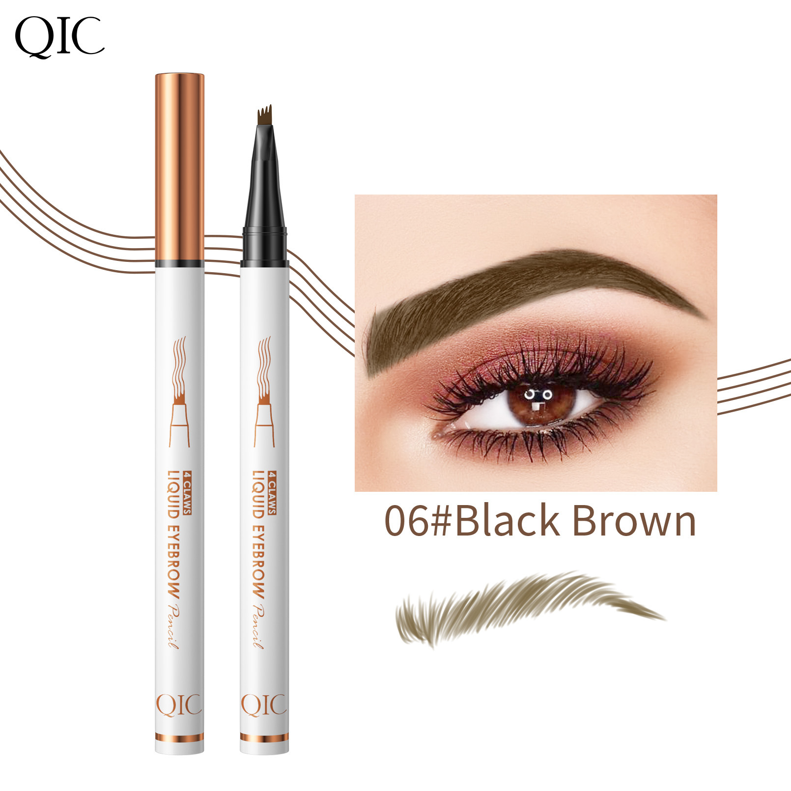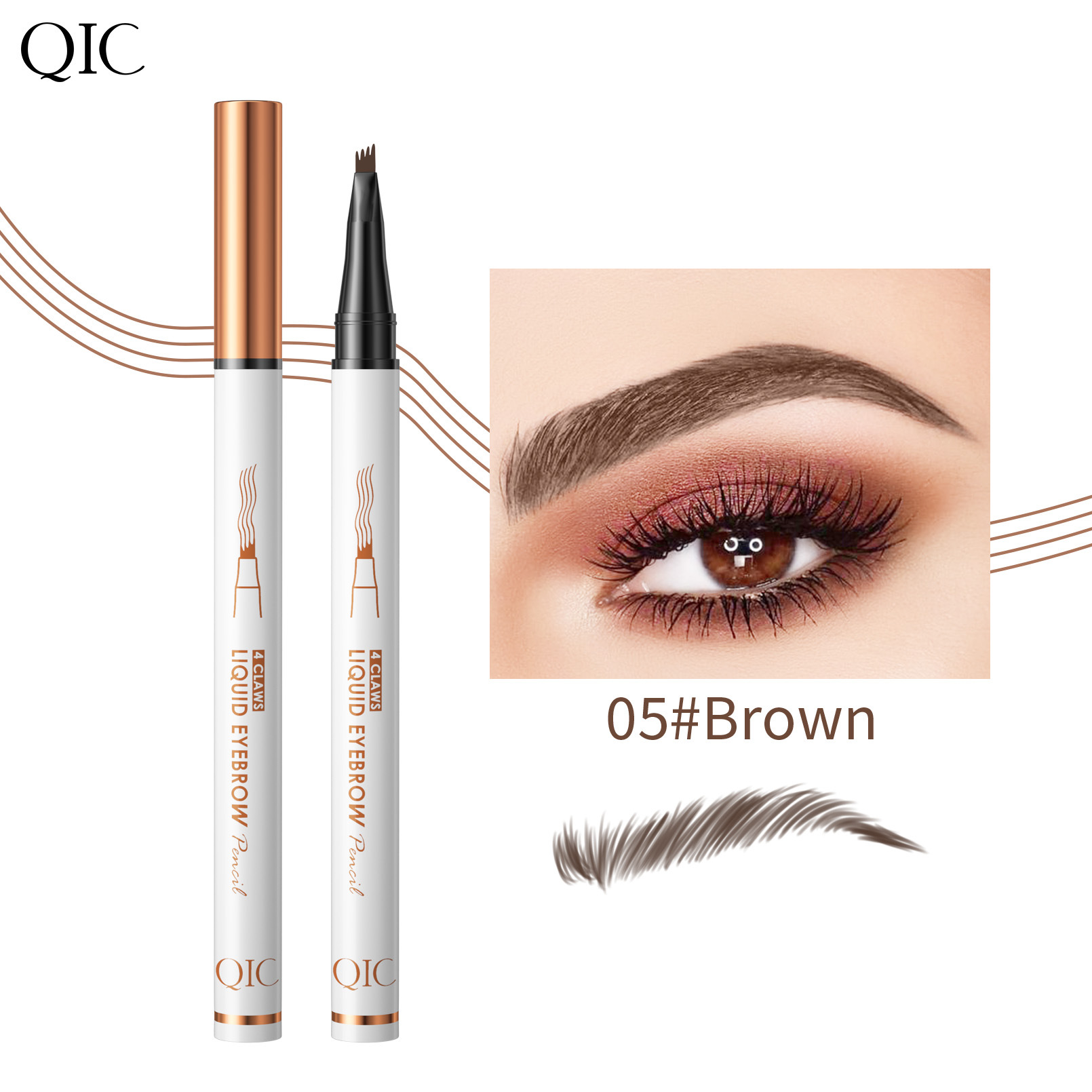 QIC四爪液体眉笔持久防水防汗不晕染极细不脱妆四头分叉眉笔跨境