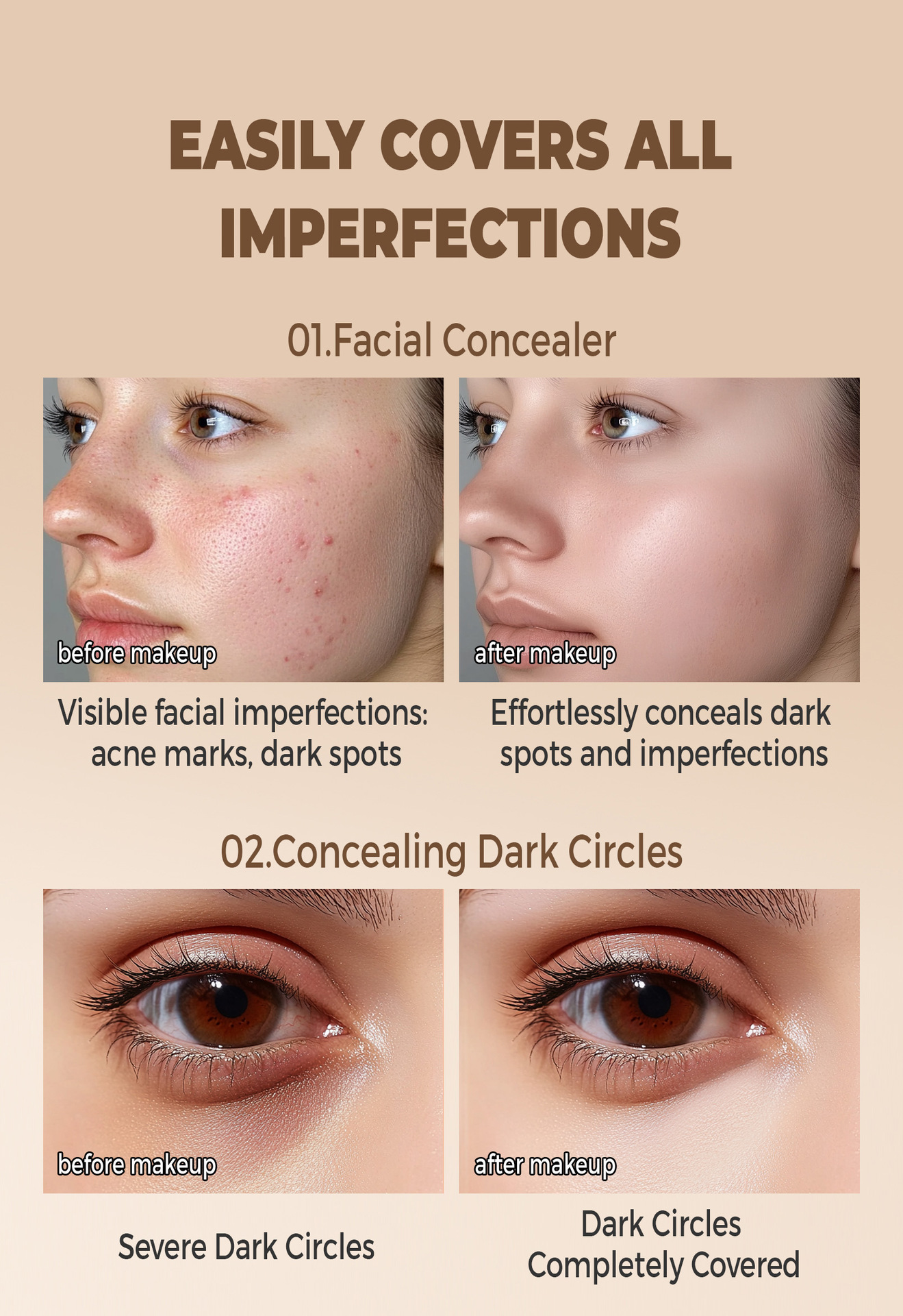 QIC柔肤粉底膏遮瑕膏遮痘印黑眼圈持久不卡粉遮瑕粉底膏跨境彩妆