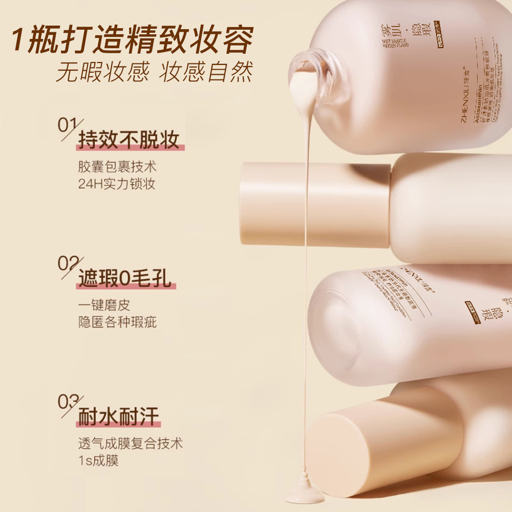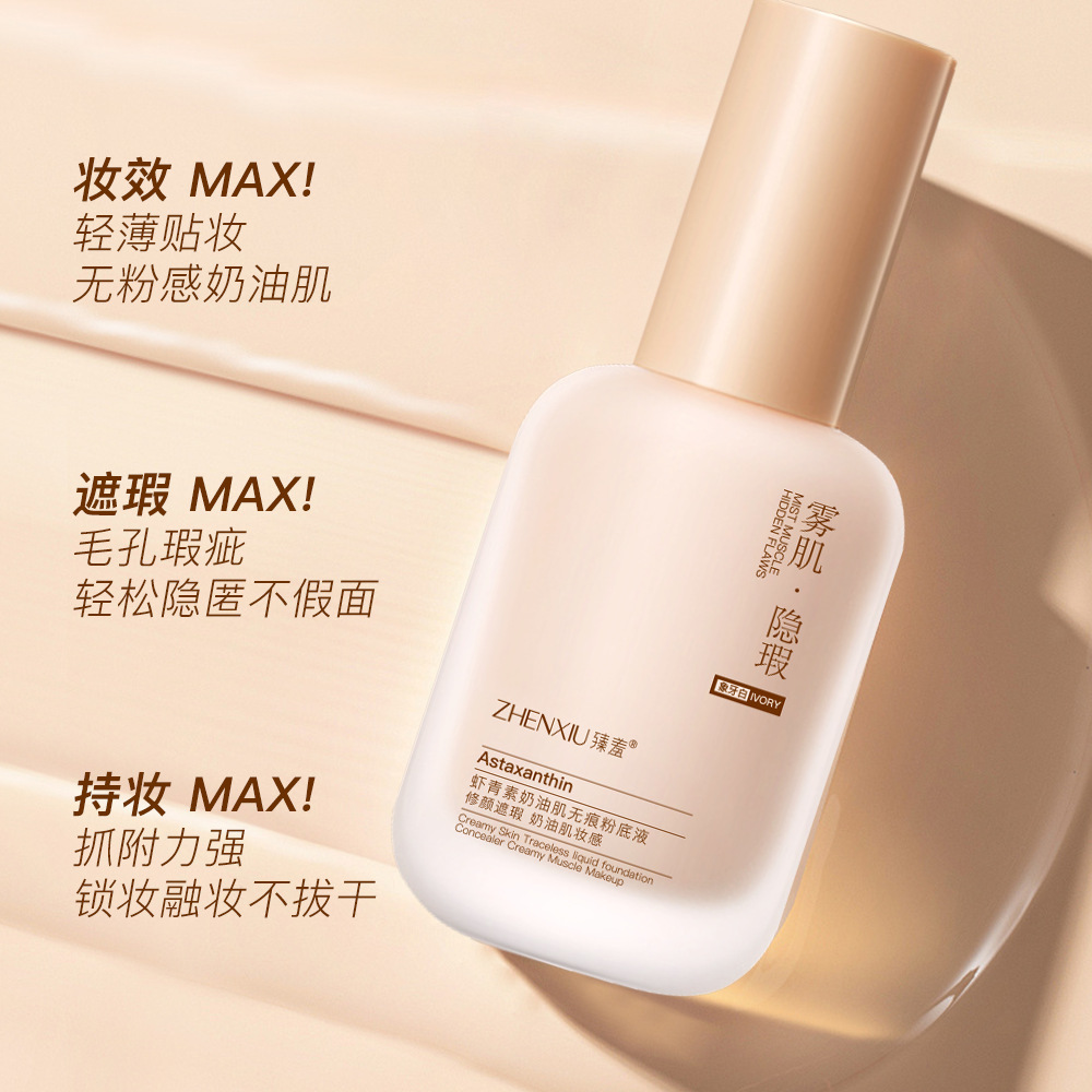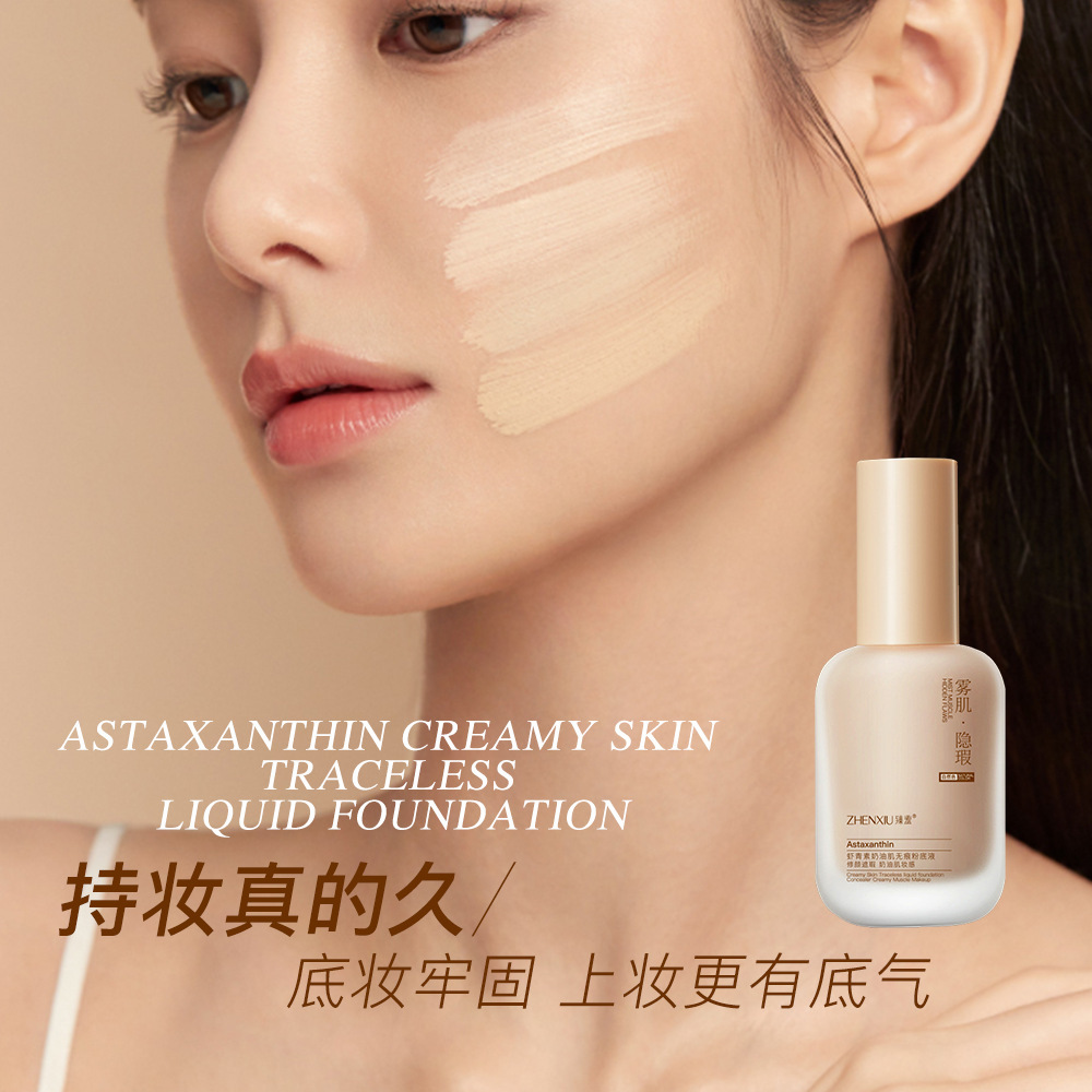 臻羞虾青素奶油肌无痕粉底液不卡粉bb霜遮瑕持久不脱妆养肤干皮