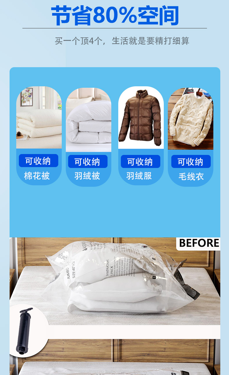 萱通A跨境亚马逊爆款真空压缩袋被子衣物衣服专用羽绒服收纳袋