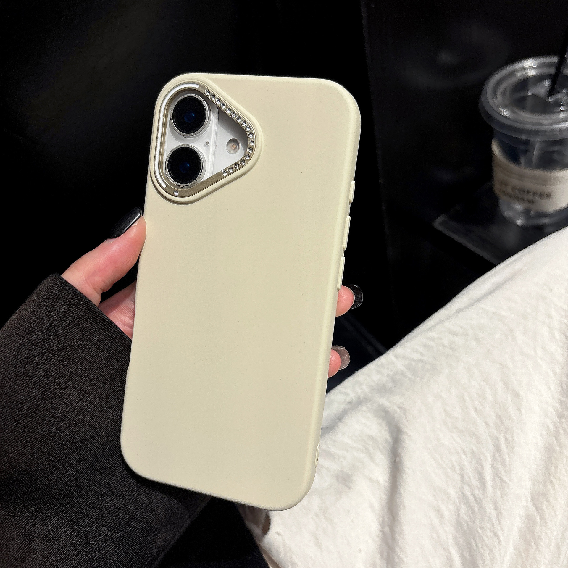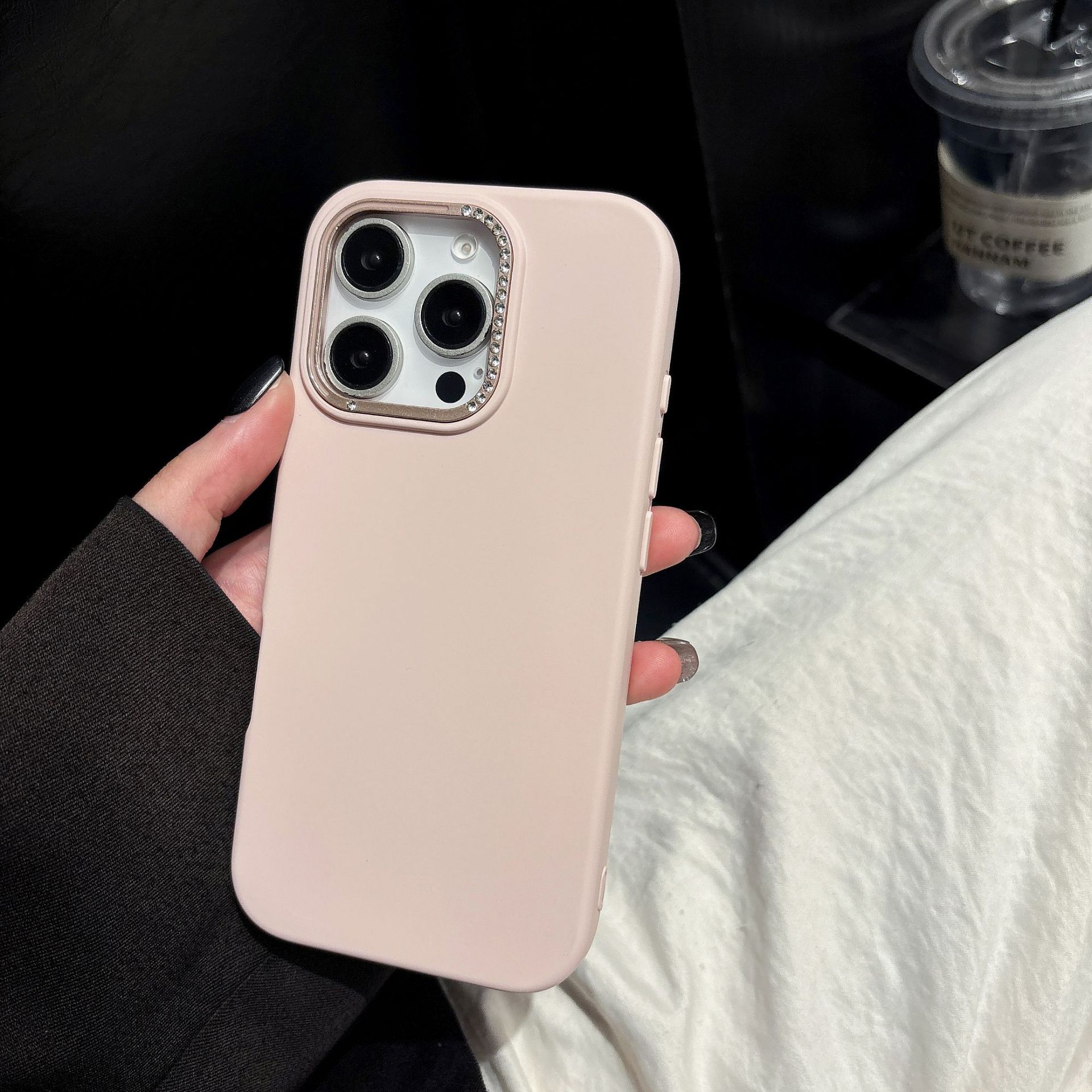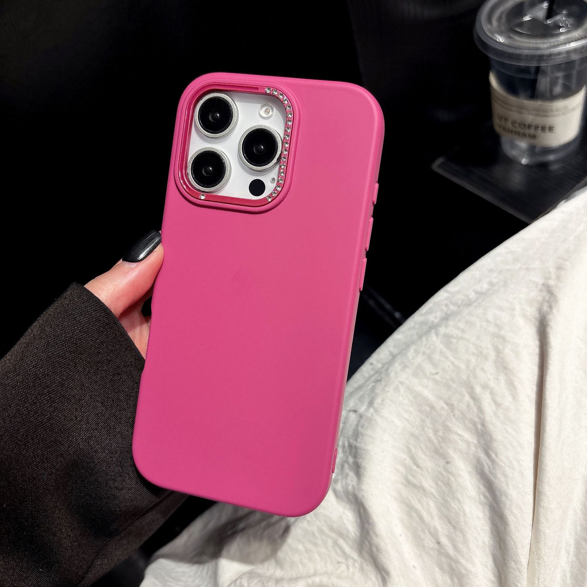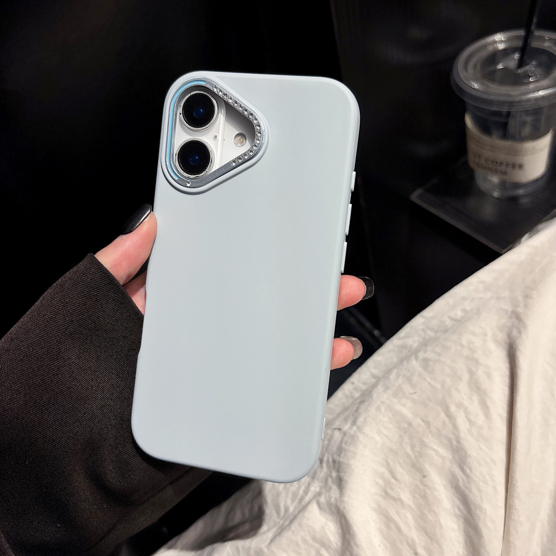 适用苹果16ProMax液态硅胶金属点钻镜框iP16手机壳16Pro闪钻镜头