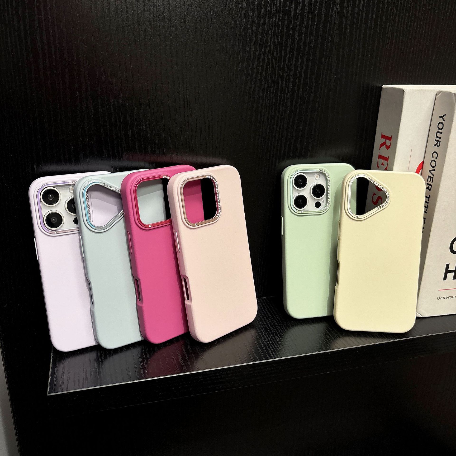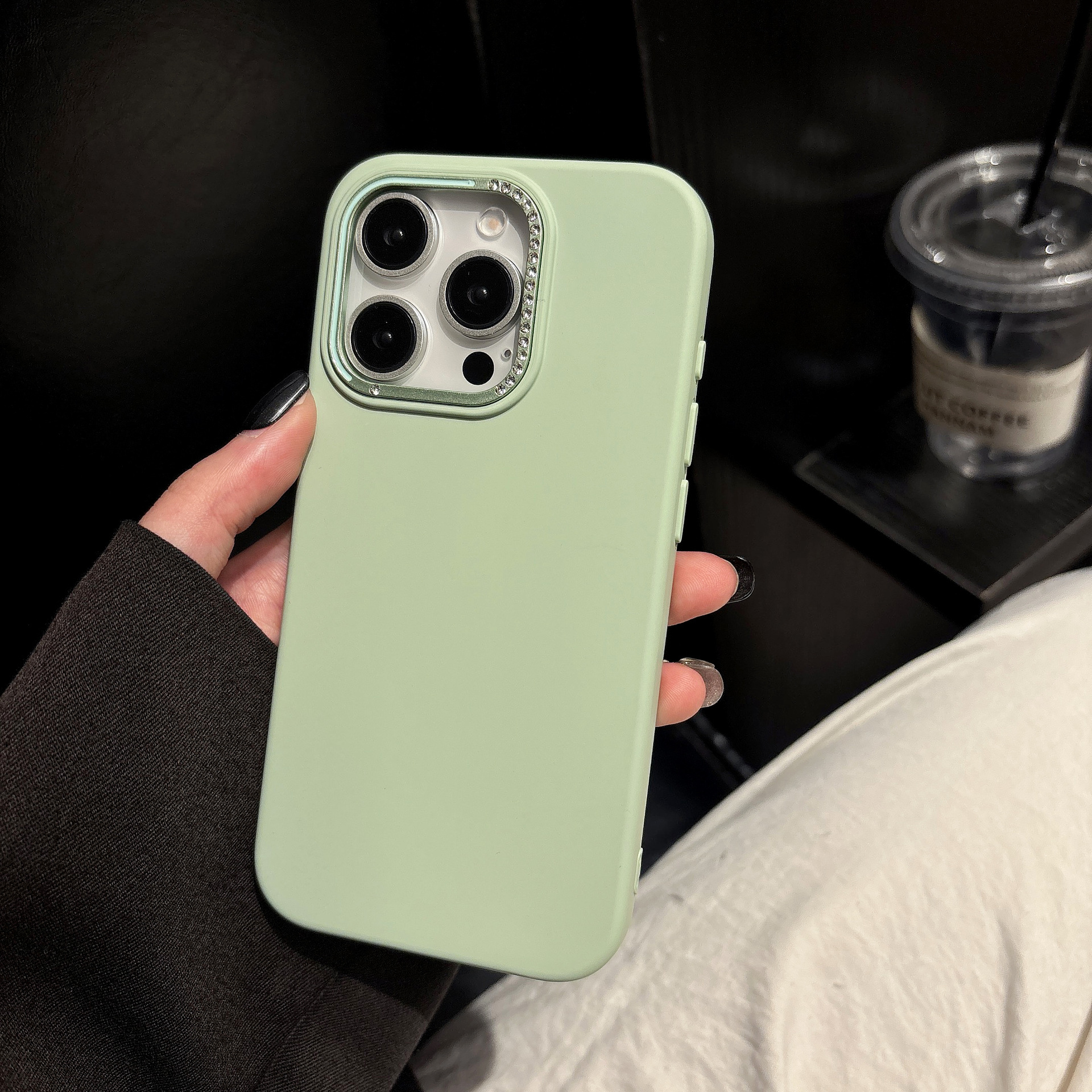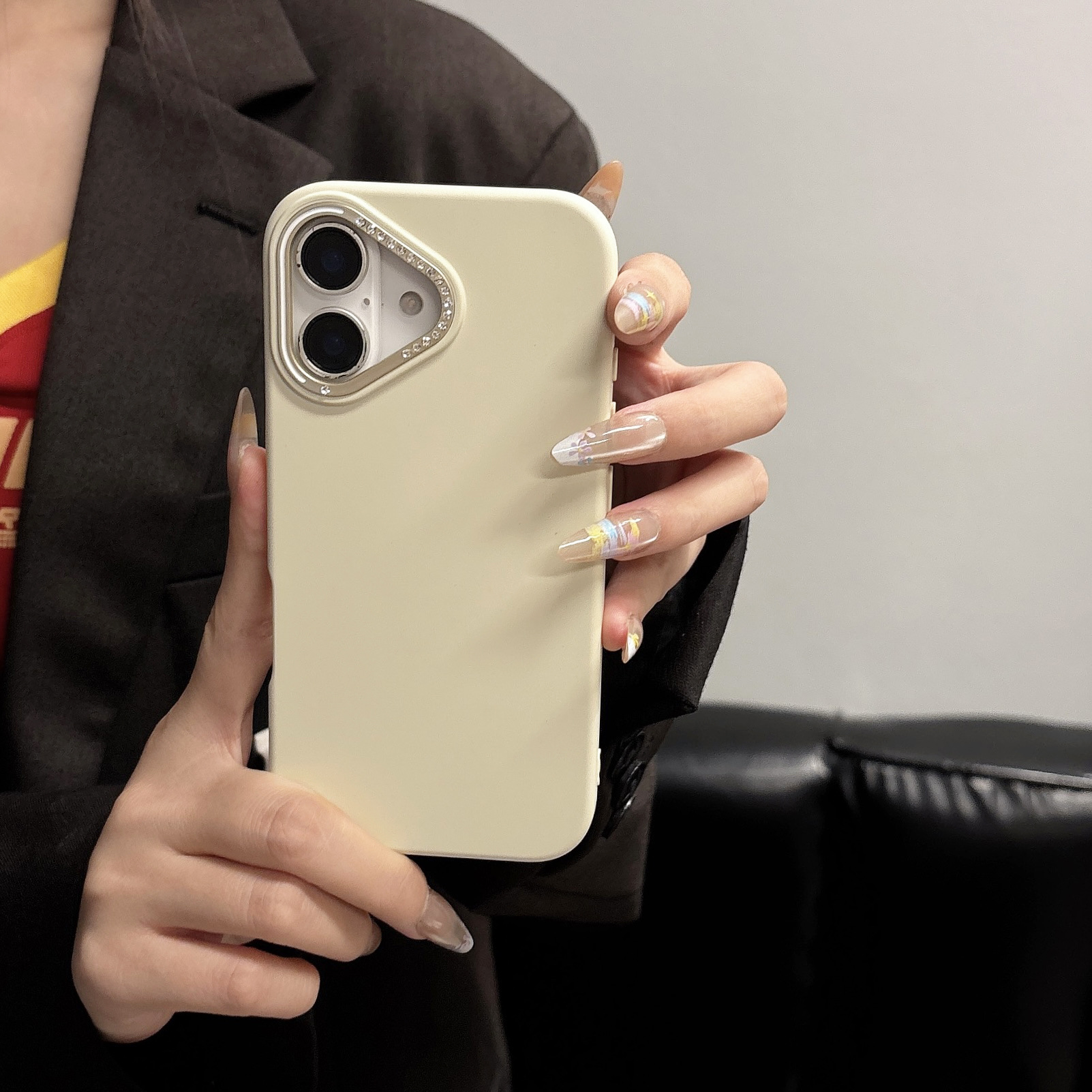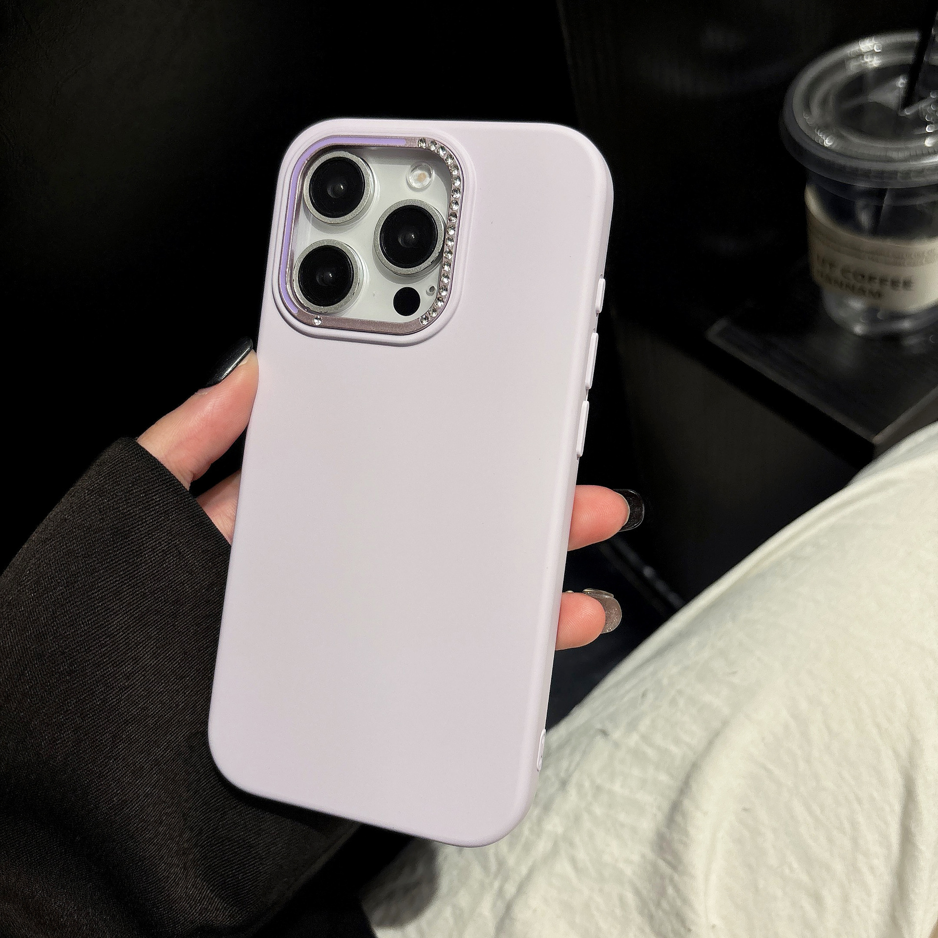 适用苹果16ProMax液态硅胶金属点钻镜框iP16手机壳16Pro闪钻镜头