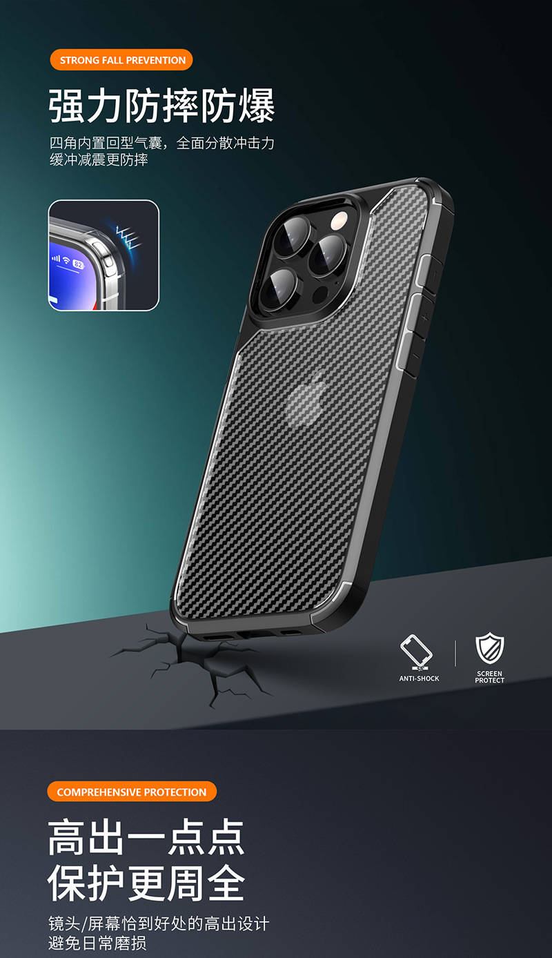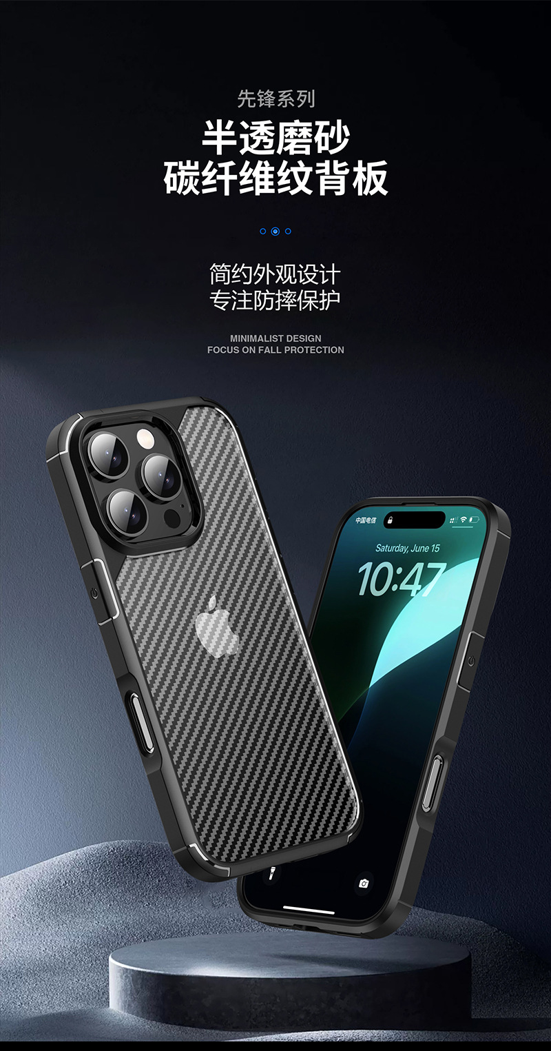 适用苹果16手机壳碳纤维纹理iphone16promax防摔套16pro新款现货