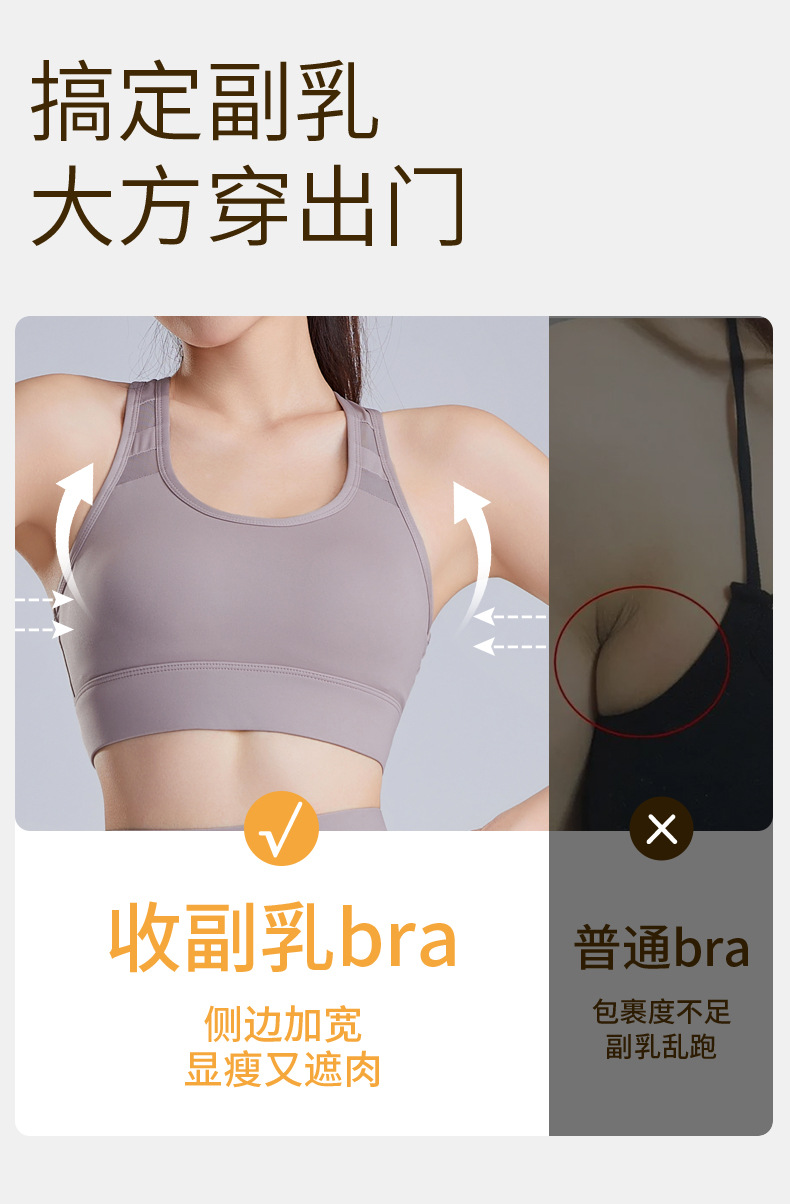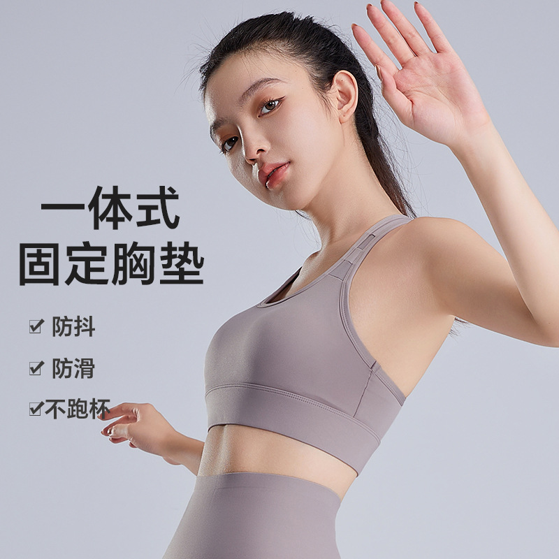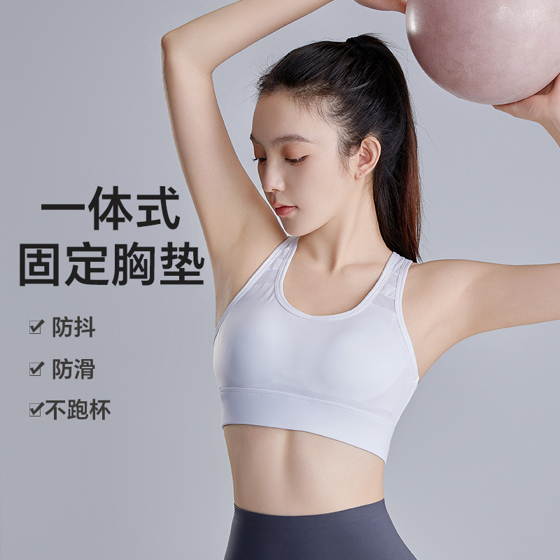 高强度防震聚拢一体式运动内衣女小胸固定胸垫美背运动文胸可外穿
