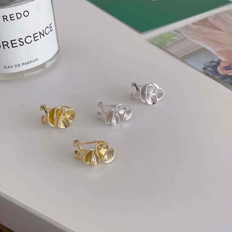 925银针荷叶边褶皱小众设计感耳环女生韩国ins冷淡风时尚精致饰品