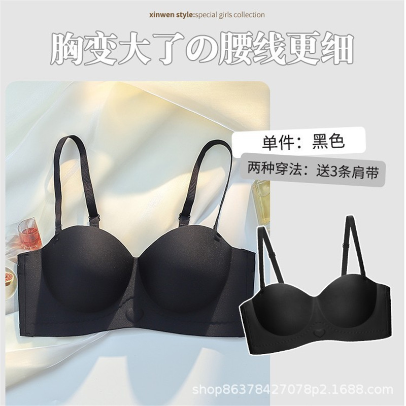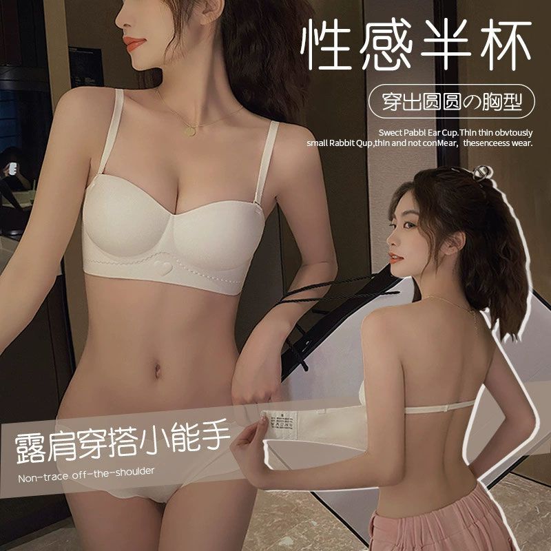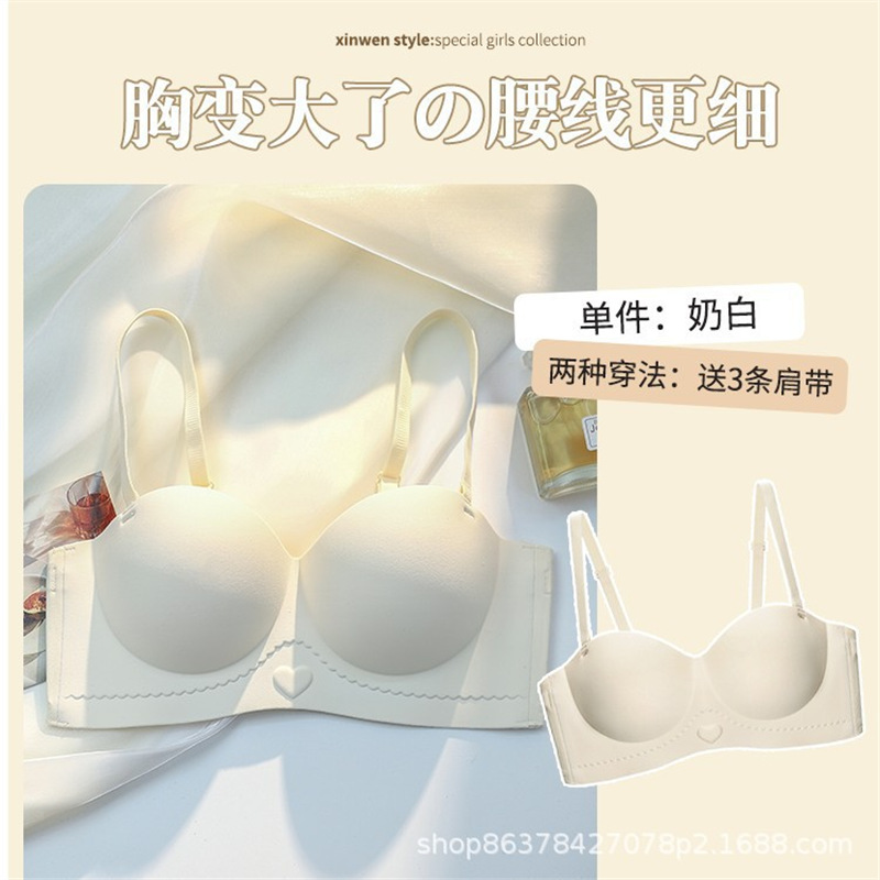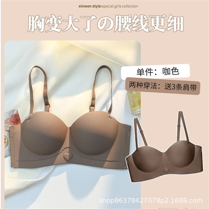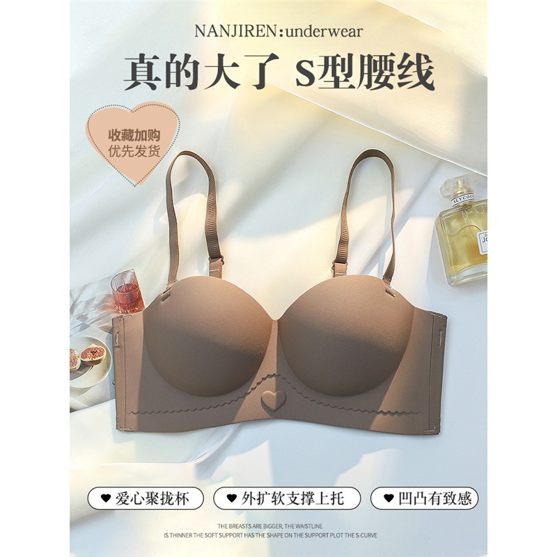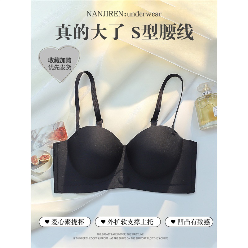 OEING内衣女士薄款大胸显小防下垂收副乳聚拢美背无肩带性感文胸
