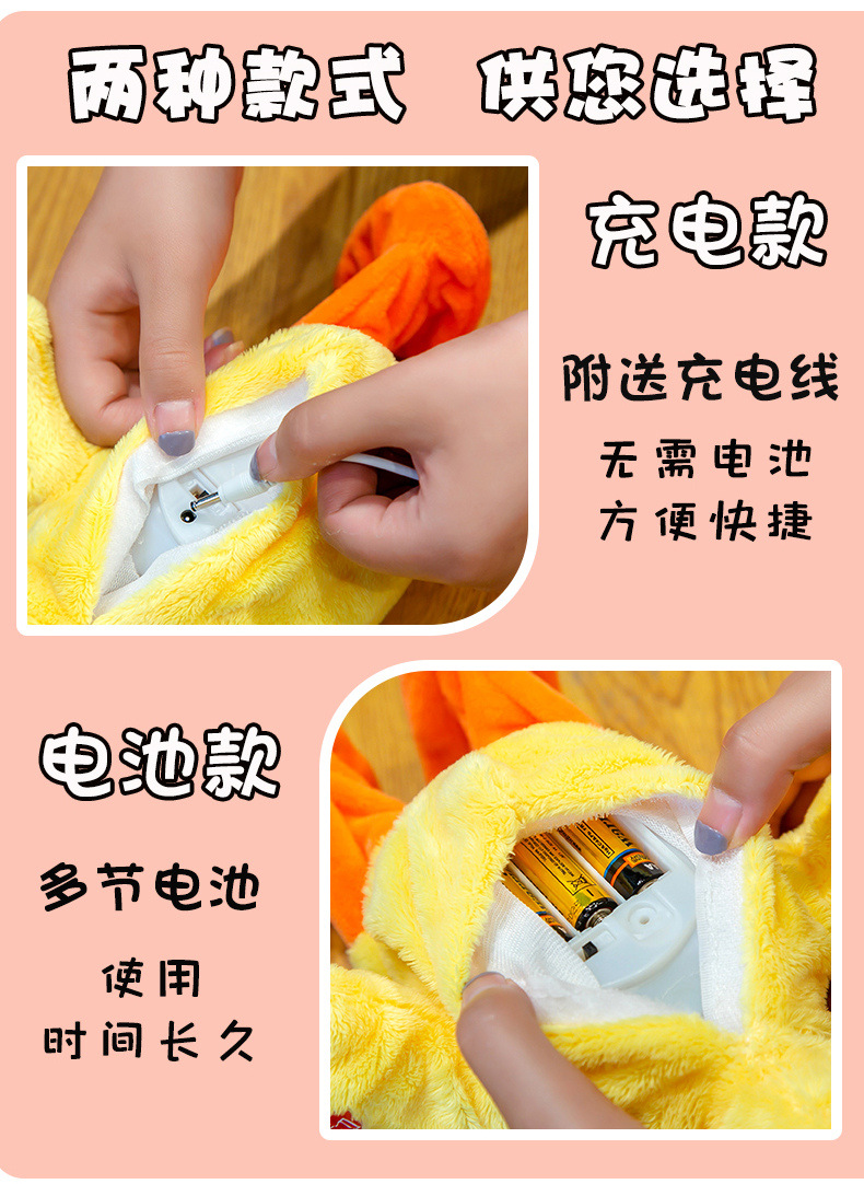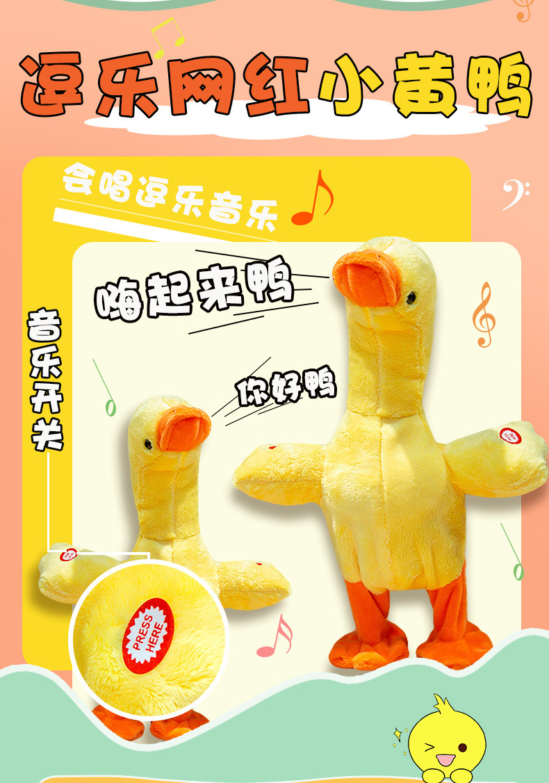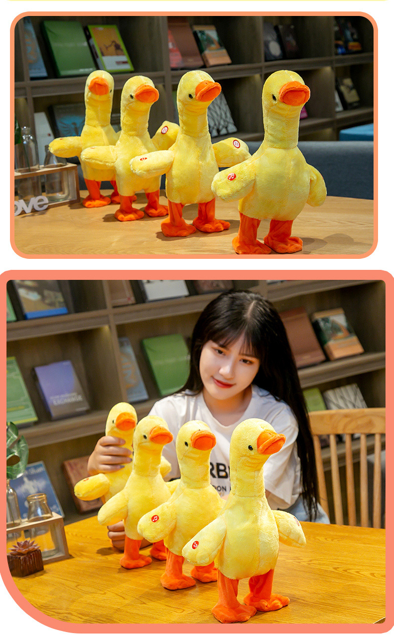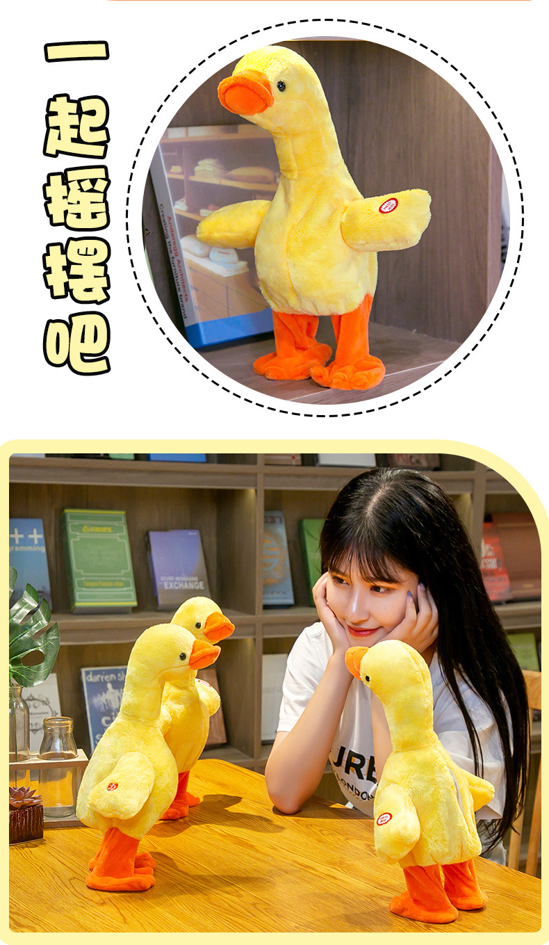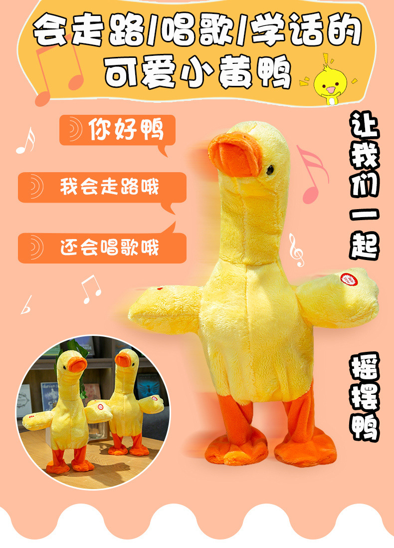 跨境热卖提脖鸭子会唱歌会说话的鸭子走路复读鸭电动毛绒玩具公仔