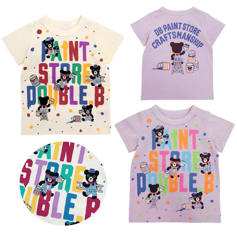 现货 miki童装 夏季日式新款卡通DB油漆工黑熊印花短袖T恤